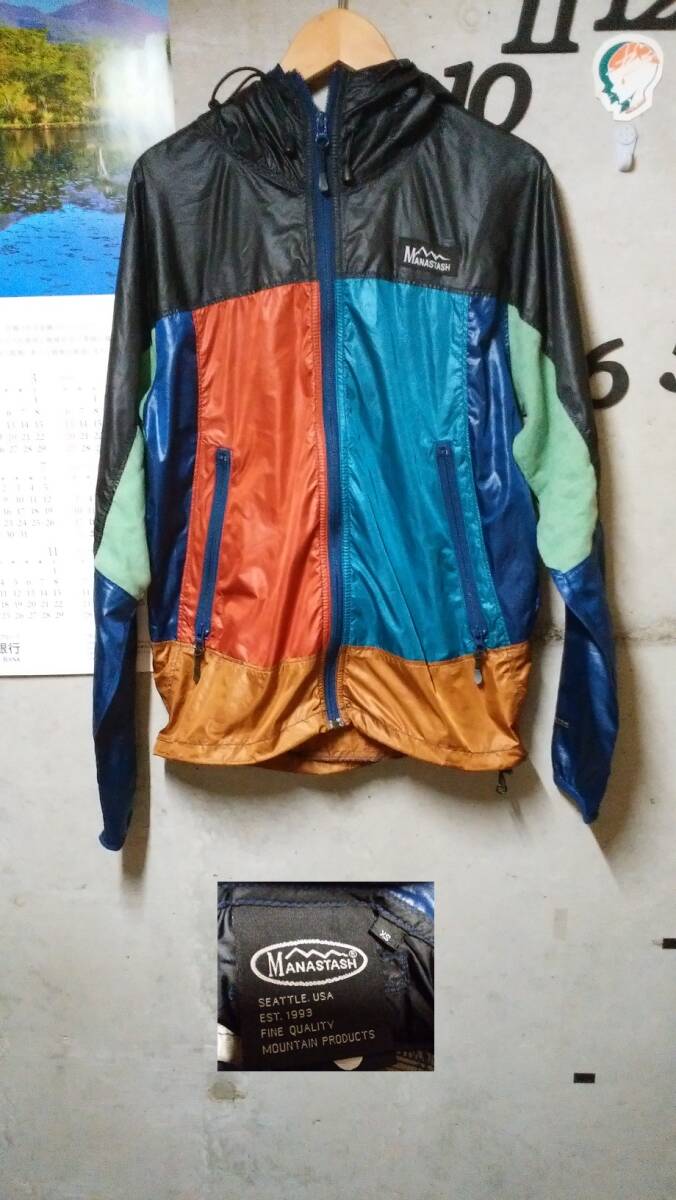 MANASTASH フーディー XS ブラック×ネイビー×グリーン(麻混)×ブラウン マナスタッシュ