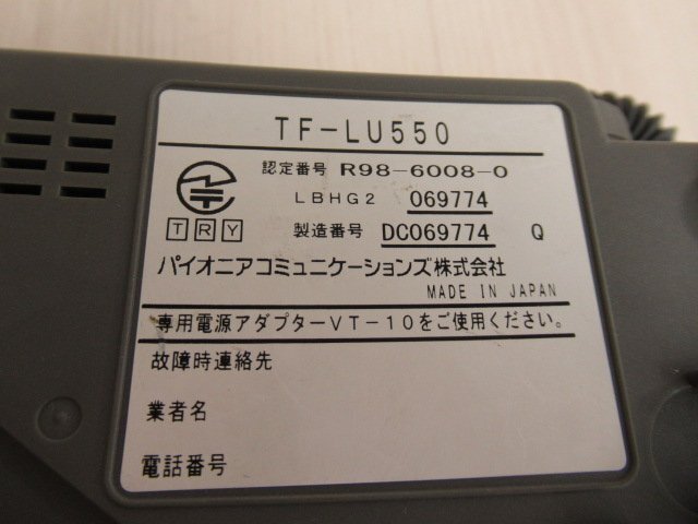 ●内容 ◇ TF-LU550×1 ◇ TF-PK5×1 パイオニア 長距離コードレス電話機 ●商品の状態ランク 【 カ 】 [ア] 新品 [イ] 未使用品 [ウ] 美品 [エ] キレイ (ほぼ美品) [オ] キレイメ (欠点がわずか) [カ] 普通 [キ] 欠点がやや気になる [ク] 欠点がかなり気になる [ケ] 使用感最大 [コ] ジャンク ●補足説明 本商品は中古品となります。 写真では分かりにくいキズ・汚れ・欠けなどの使用感があります。 予めご理解・ご了承頂きますようお願いいたします。 全体に日焼けがあり、キズがございます。 動作確認済です。 電池は消耗品の為、現状渡しになります。 電池残容量は保証の対象外になります。 複写の取扱説明書が付いております。 弊社で保管中に経年で商品の日焼が写真よりも進む場合がございますのでご了承下さい。