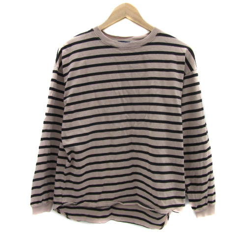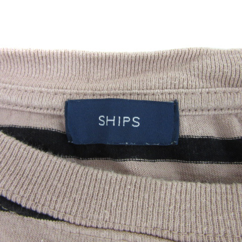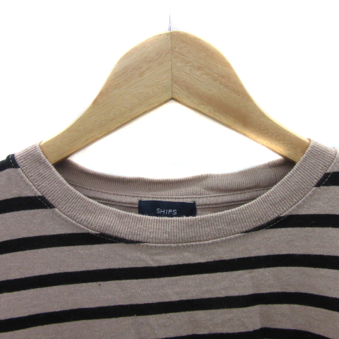 シップス SHIPS Tシャツ カットソー 長袖 ラウンドネック ボーダー柄 S ベージュ 黒 ブラック /YS11 メンズ