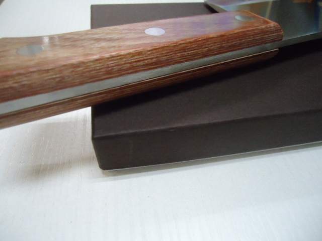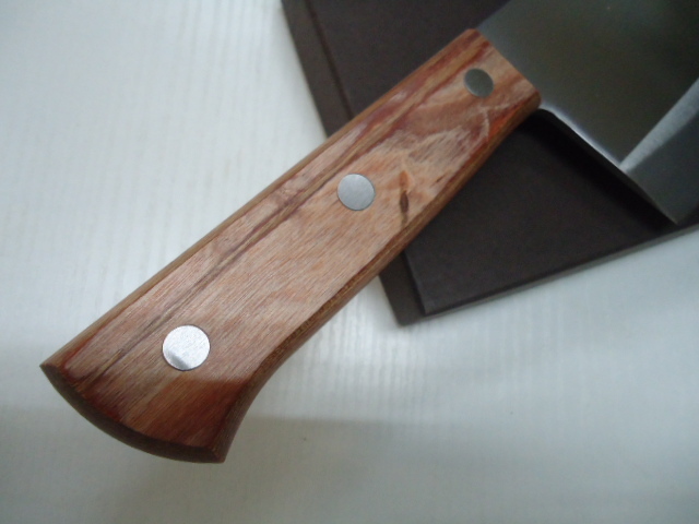 商品説明 | ご面倒でも必ず注意事項等お読みの上、ご入札ください。トラブルの元です 営業日以外連絡発送できません!従って送料連絡も営業日・営業時間内になります。 《店休》 土日祭日 年末年始・12月23日~1月7日 ゴールデンウイーク 盆 8月13日~16日 ずっしり重い ステンレス製で刃こぼれし難い 硬い骨切りに重宝 刃渡り 170mm 重量 550g 厚さ 約3.5mm 最大幅 97mm ☆ 備 考 新品の刃物は・・・ *本来刃物はメーカーより機械研ぎで入荷します。砥石で研いだ刃物の入荷は殆どありません。もちろん新品の切れ味はありますが、本当の切れ味をお望みであれば・・・ 新品もまず砥石で研いでご使用された方が、本来の切れ味が楽しめます。 本刃付けも承っております。ご希望の方は取りナビにてご連絡ください。 【6000番仕上げ砥石】三徳包丁 700円~ 出刃・刺身 900円~材質・サイズによって変わります。 手研ぎの為研ぎ跡が必ず付きます! 在庫管理に努めておりますが、店舗で販売もしておりますので、万一品切れの際はキャンセルさせて頂くか、お待ちいただく場合がございます。 |
