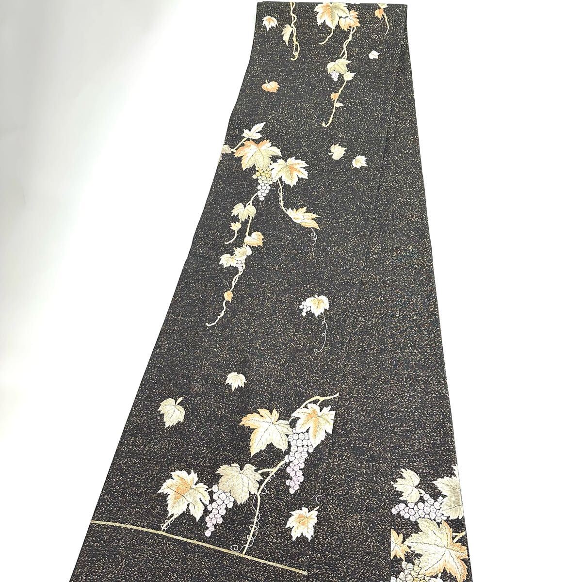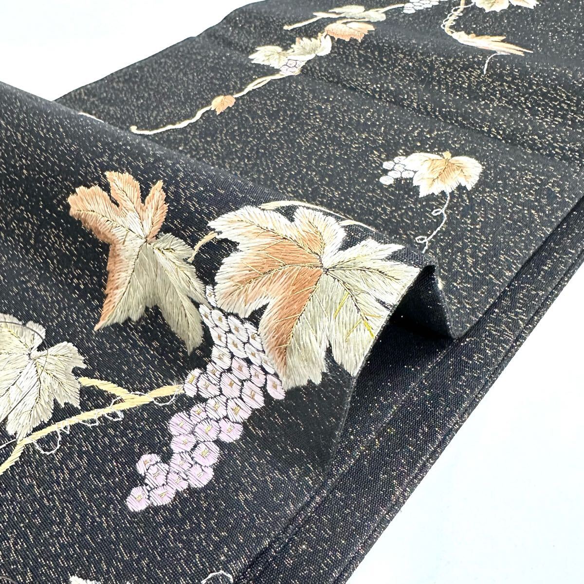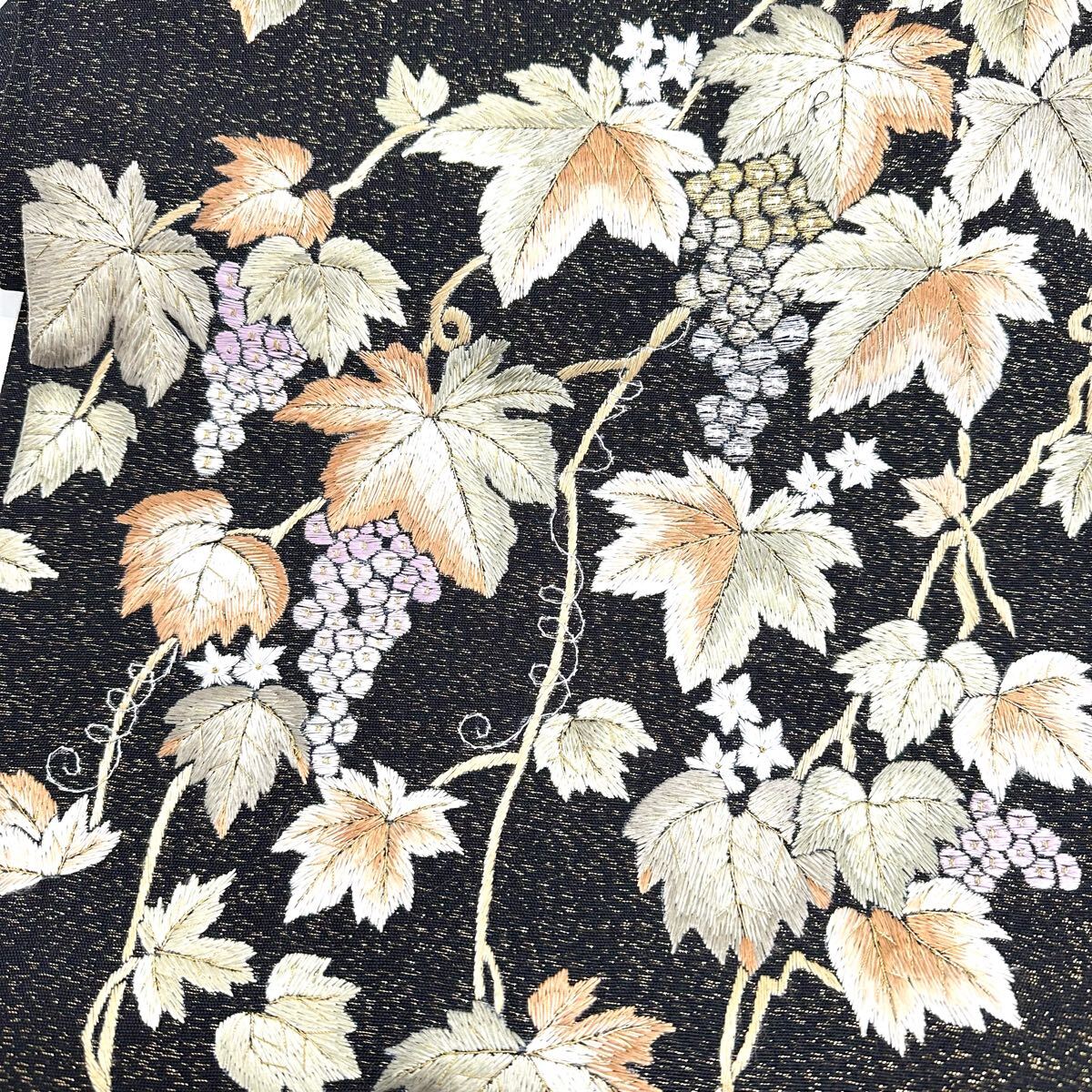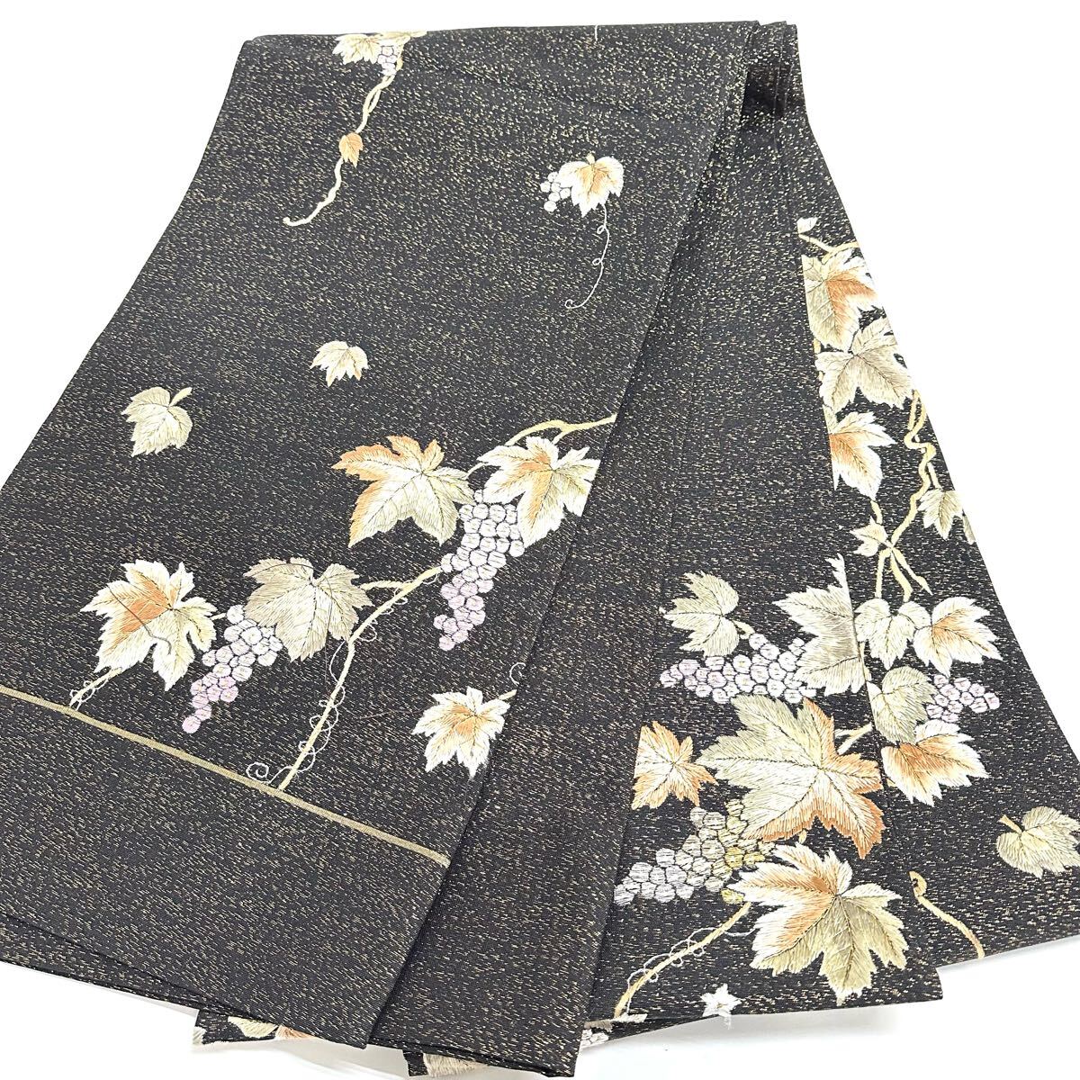 【七福】c570 逸品 高級品 正絹 袋帯 六通 葡萄 金糸 銀糸 刺繍 豪華 未仕立て