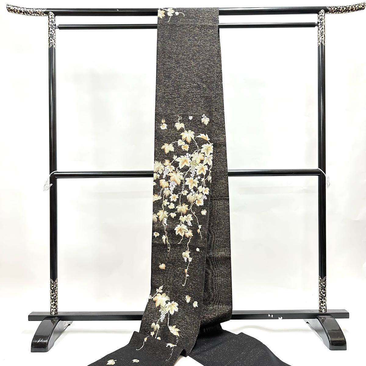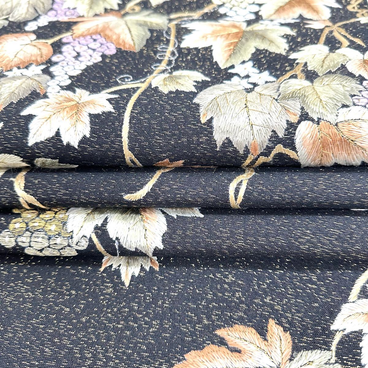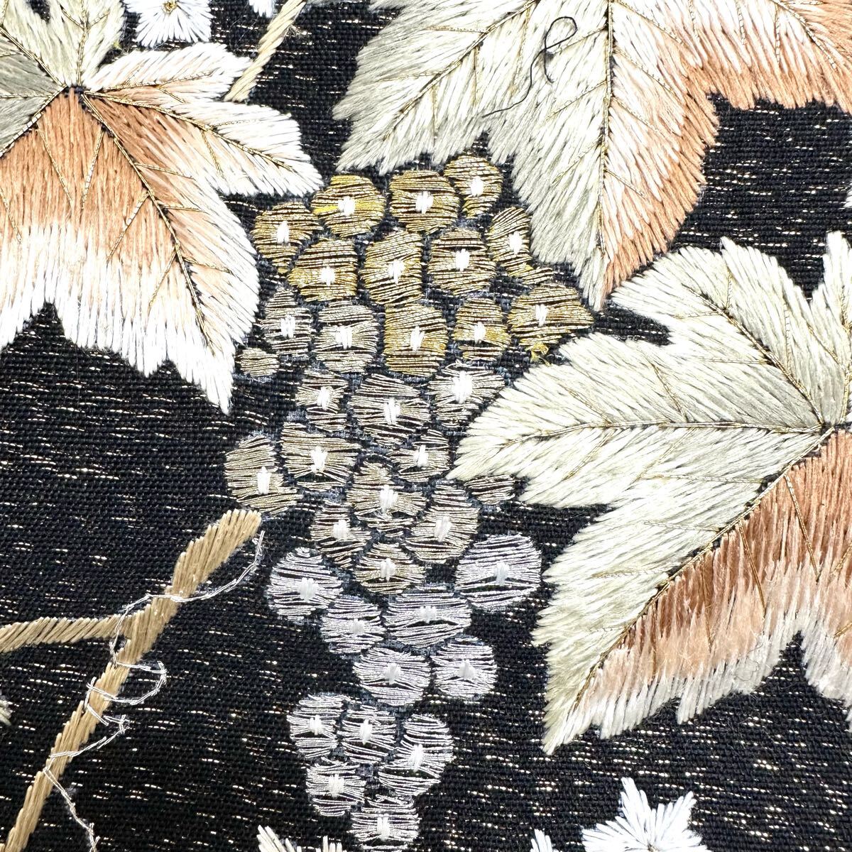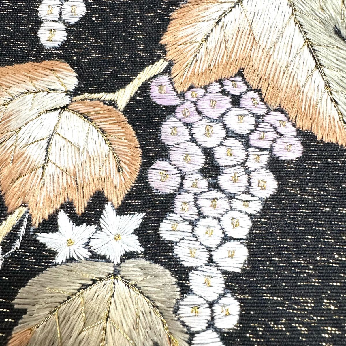 【七福】c570 逸品 高級品 正絹 袋帯 六通 葡萄 金糸 銀糸 刺繍 豪華 未仕立て