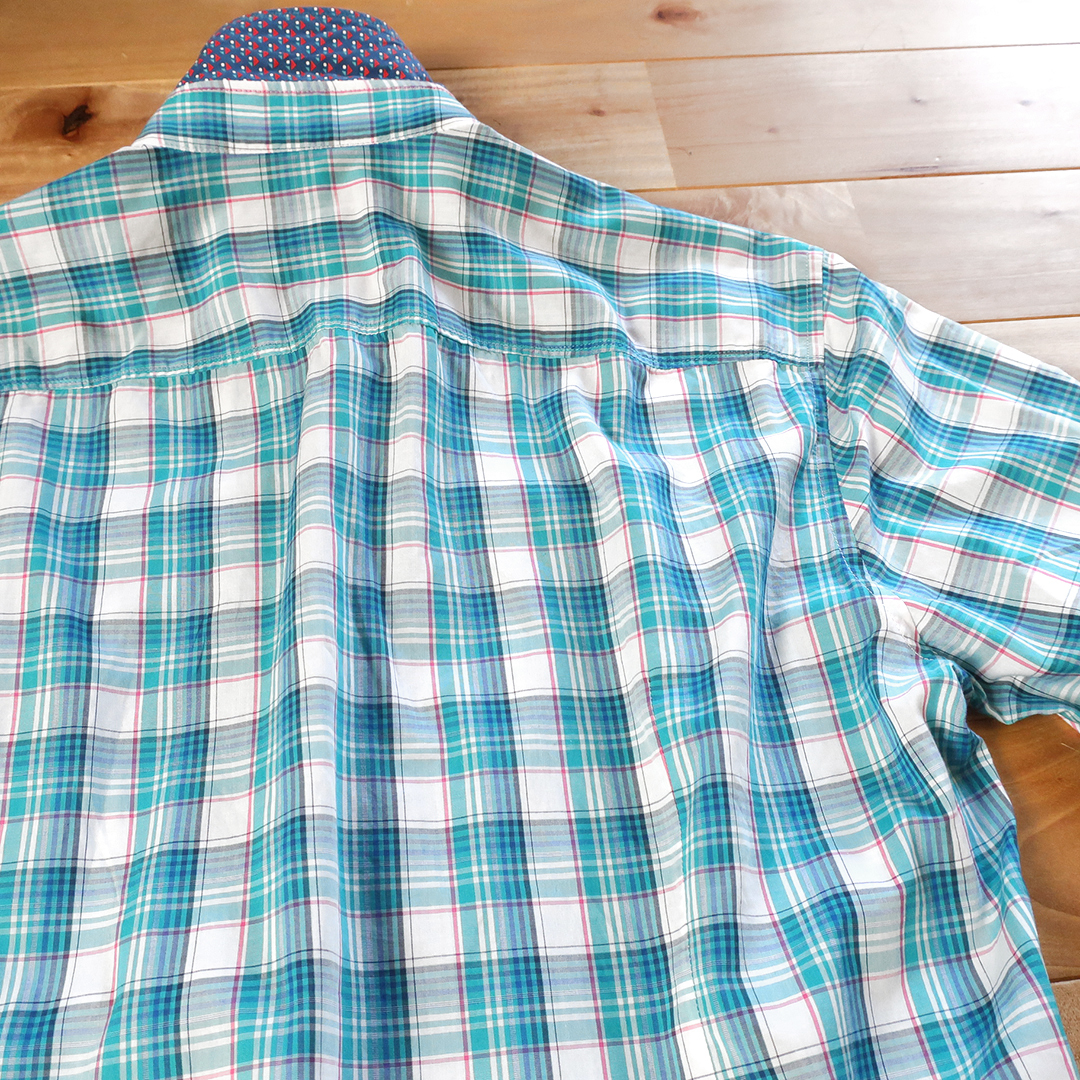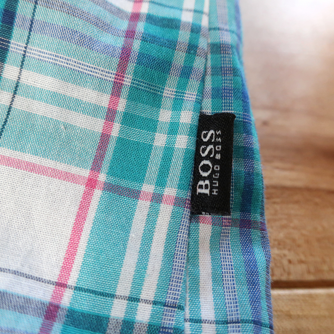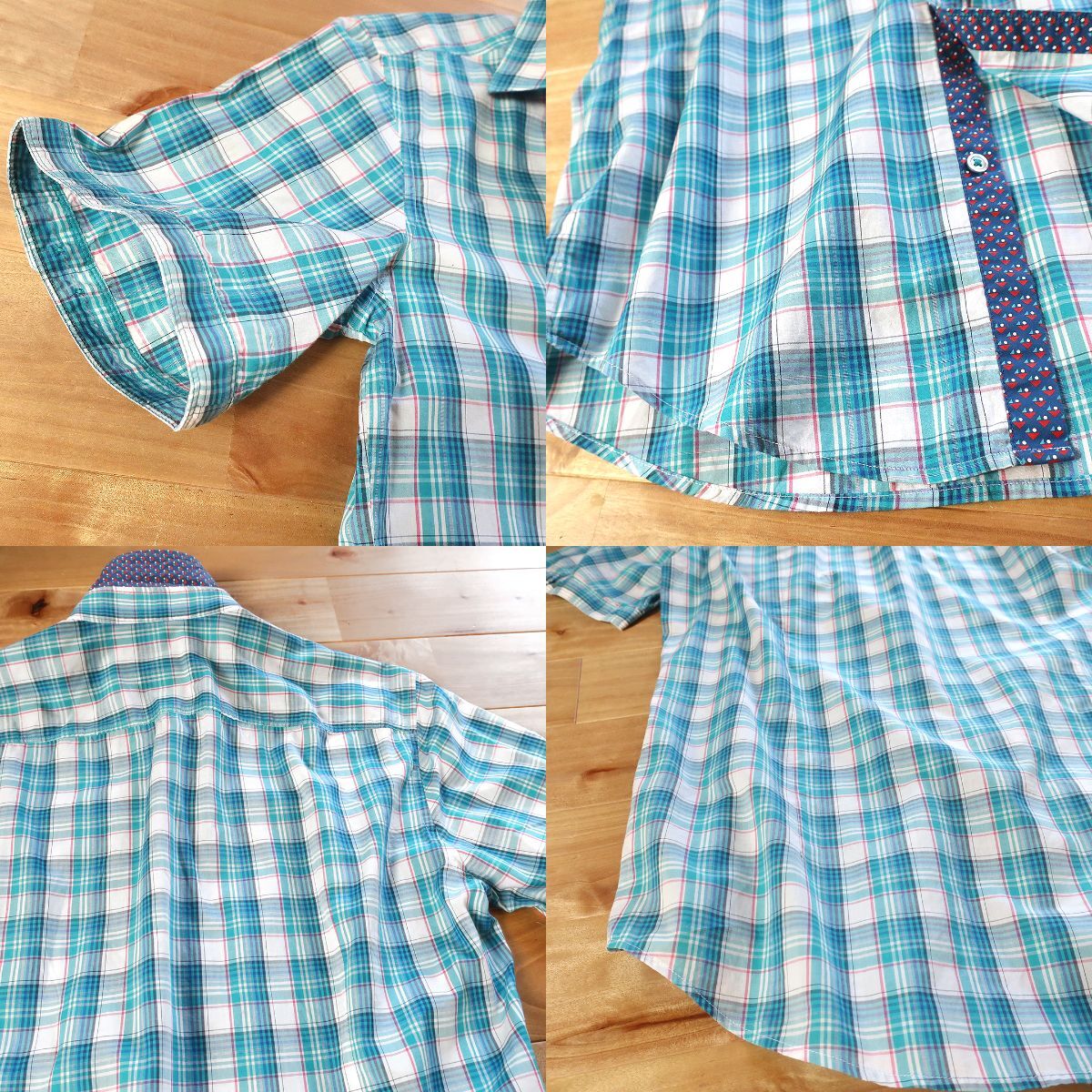 美品 HUGO BOSS ヒューゴボス クラシックチェックシャツ 半袖 トリコブルー (S) SLIM FIT