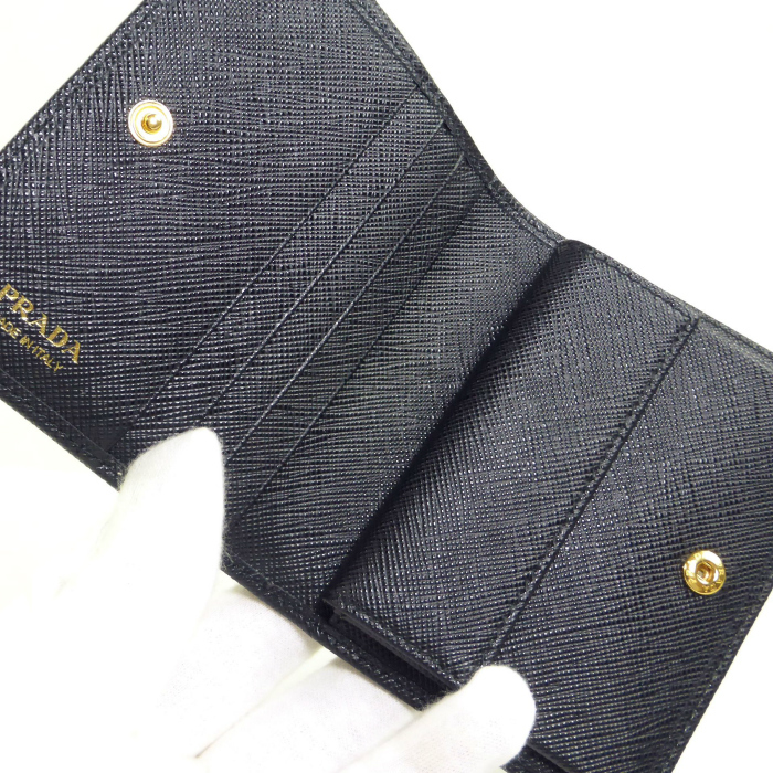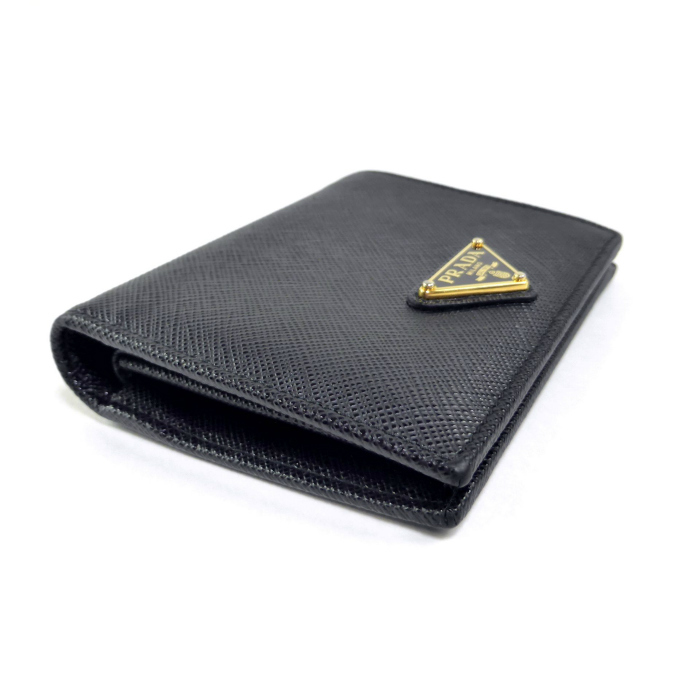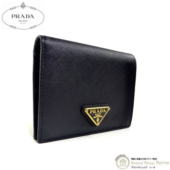 | プラダ(PRADA) サフィアーノ トライアングル ロゴ コンパクト 二つ折り 財布 1MV204 NERO(中古) |