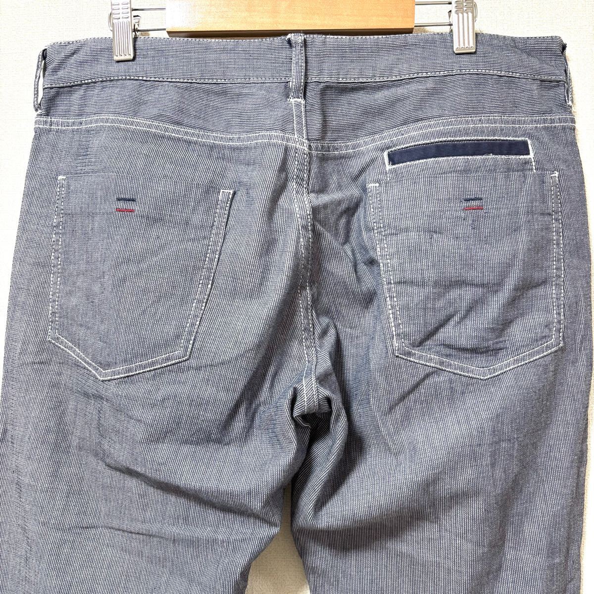 THE SHOP TKのコットンパンツです。ストレッチ性のあるコットン素材で仕立てられたパンツになります。ヒッコリー生地なのでワークテイストなコーデやアメカジコーデとも相性抜群です!状態も良いのでおすすめです^ ^