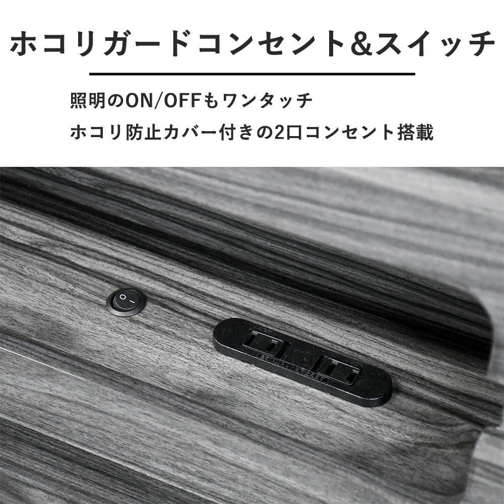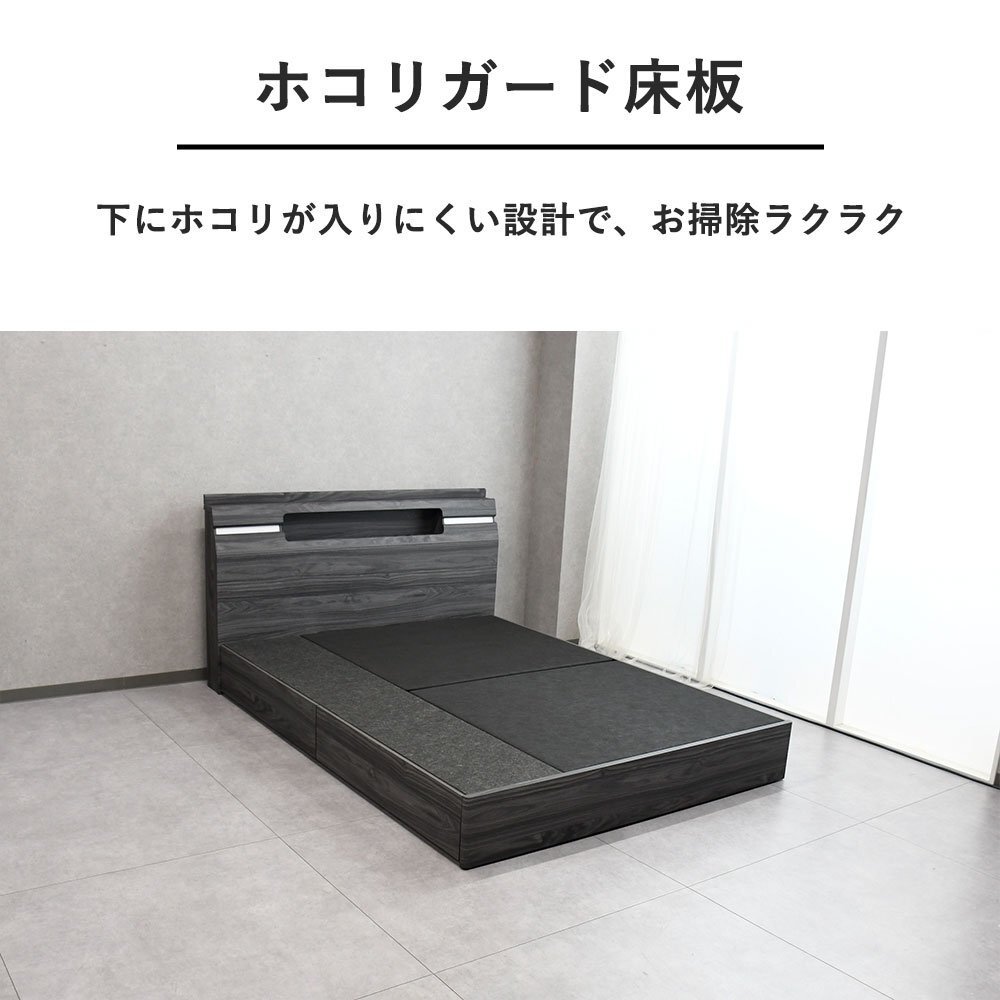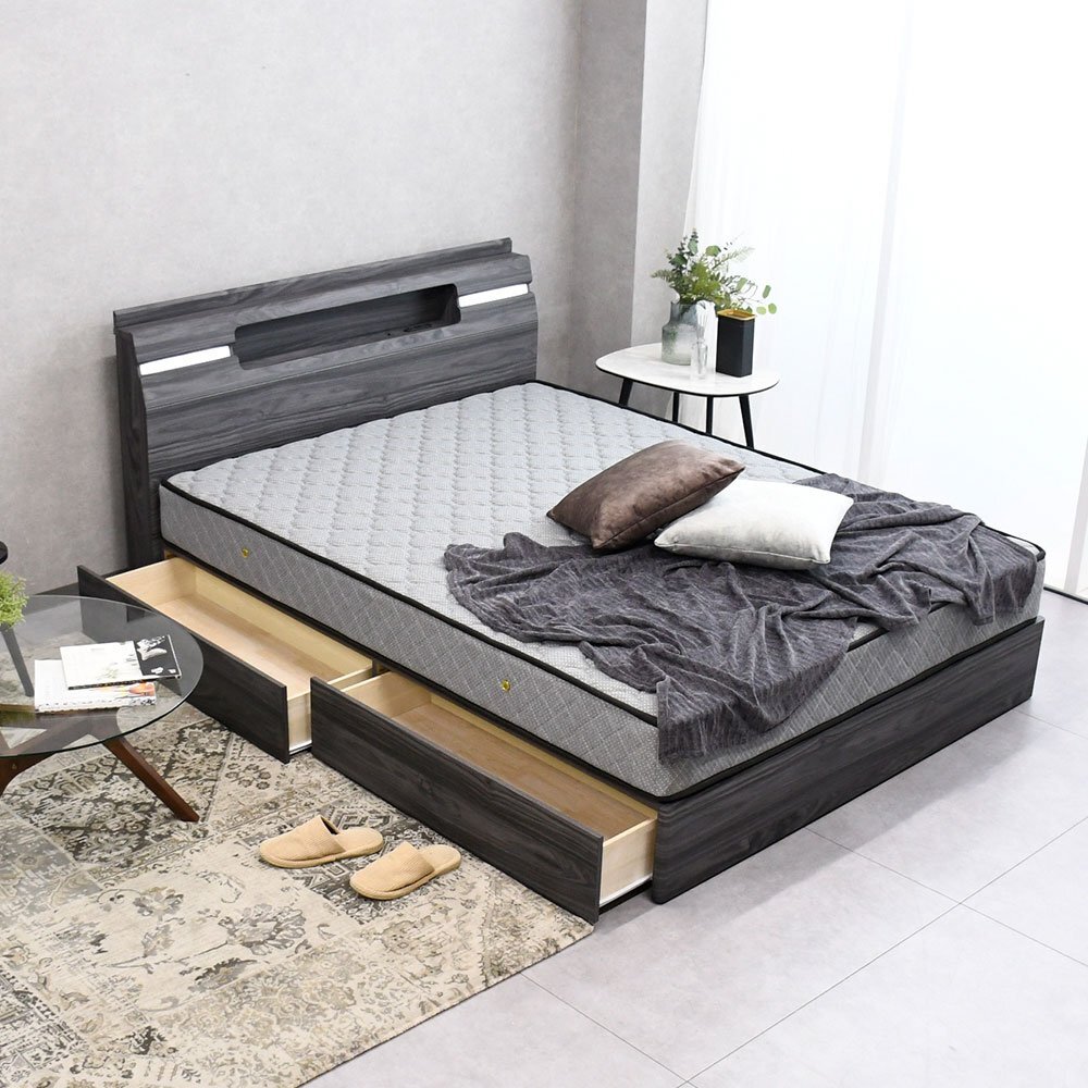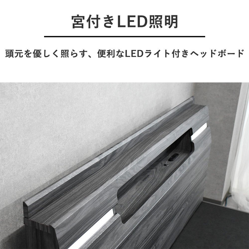 | 【限定送料無料 新品 展示処分品】LED照明コンセント引き出し収納付きワイドダブルベッド |