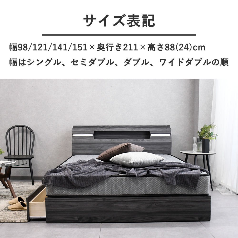 LED照明コンセント引き出し収納付きワイドダブルベッドです。 仕様詳細は写真を参照お願いします。 |
