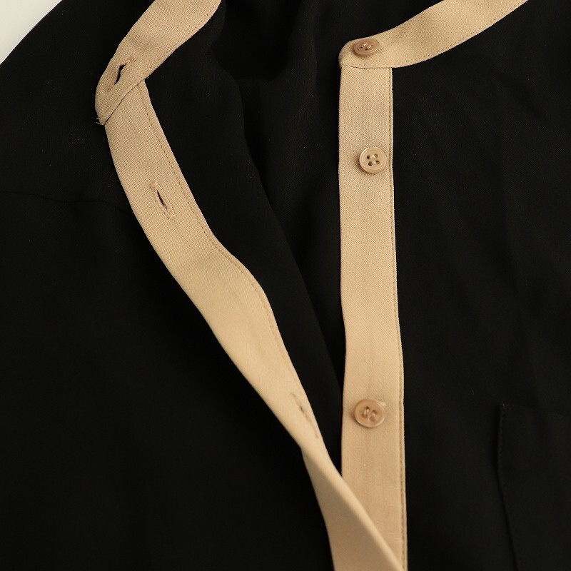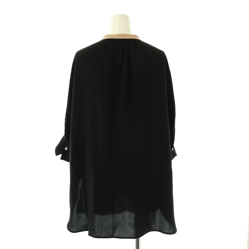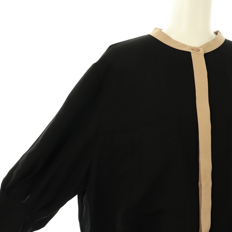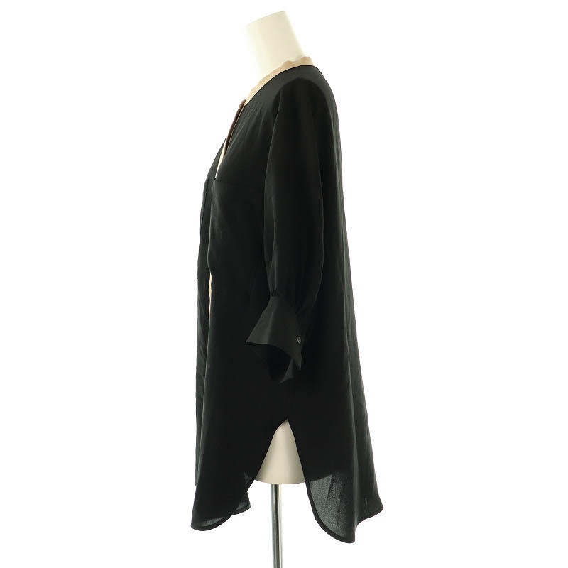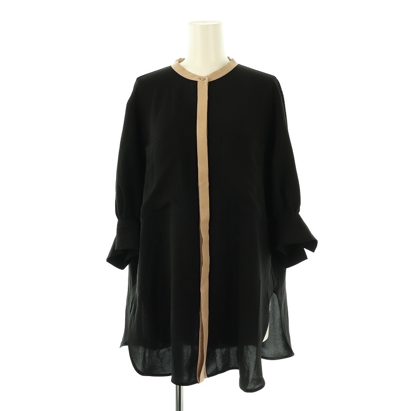 ベイジ BEIGE 24SS SIBYLLE 配色カラーパフスリーブブラウス バンドカラー チュニック 6 黒 ベージュ /MI ■OS レディース