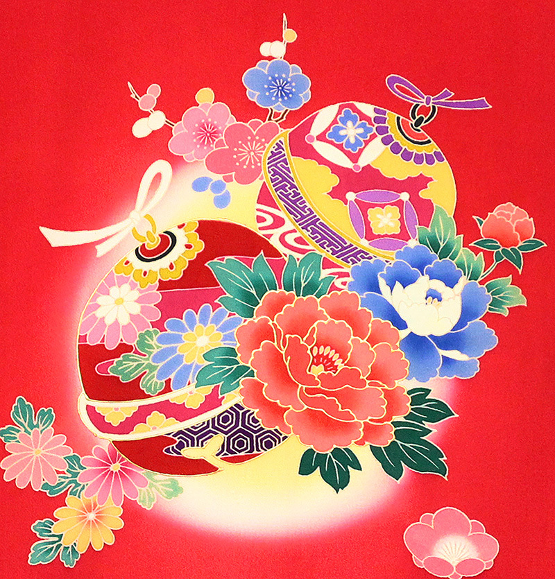 ★商品説明 | ■豪華宮廷四季花王朝まり文を京友禅伝統工芸手描き美術染と豪華本盛金加工で縁起の良い純古典で描いた超特撰ものです。 ■女の子の育成を祈った祝い文で格調高く豪華特選手描きと本金工芸仕様やボカシ友禅仕様で製作しています。 ■下着(長襦袢)もセットで付いており、前身ごろに紐もついているので、そのままご利用いただけます。 ■お祝い箱にサービスでお入れしてお届けします。 |
