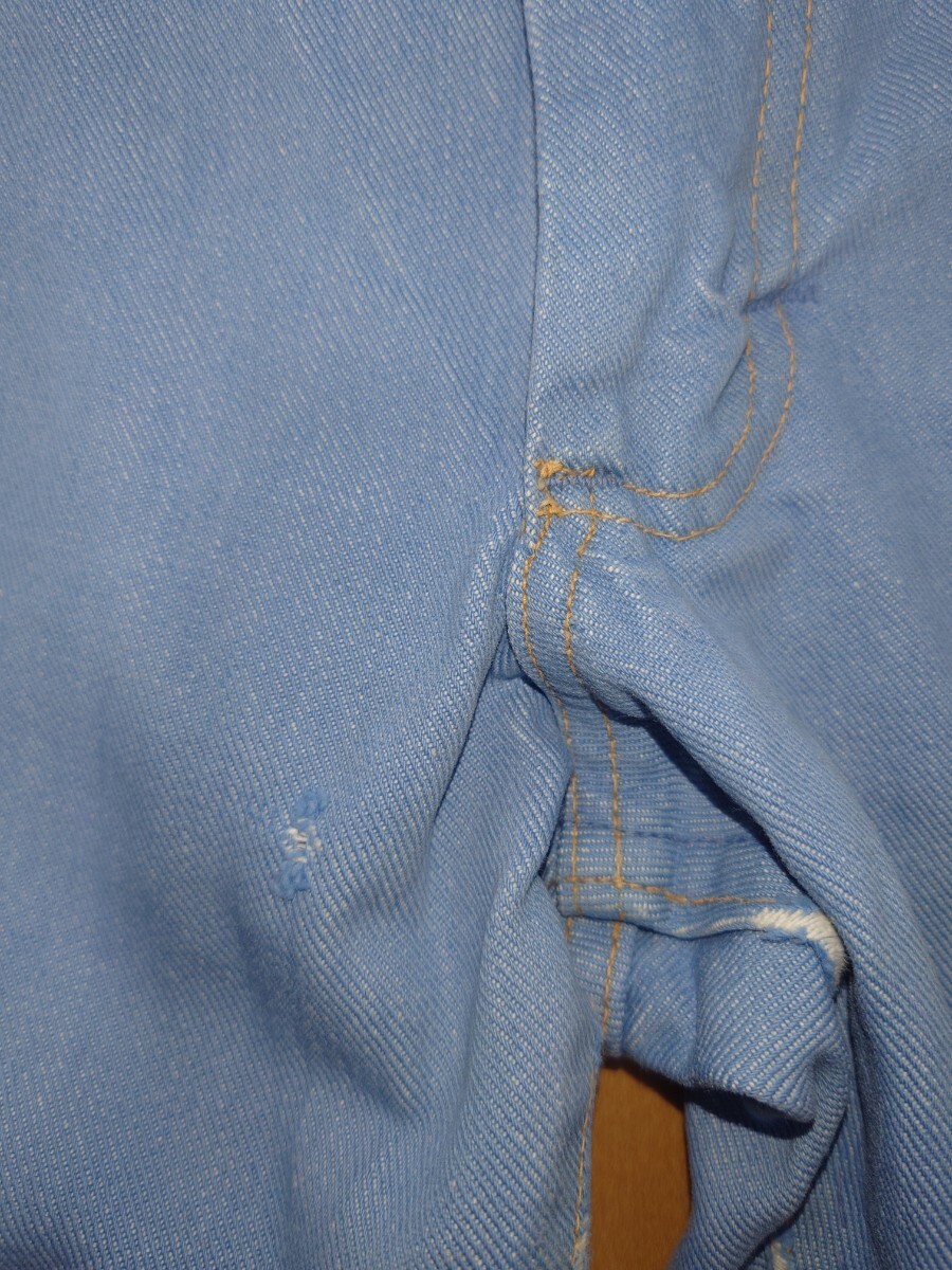 ビンテージデニムですので汚れ、ほつれ、やぶれ、穴、ダメージがあります。着用に支障のあるダメージはありません。ジッパー横に小さな穴があり、裾付近によごれがあります(写真参照)。