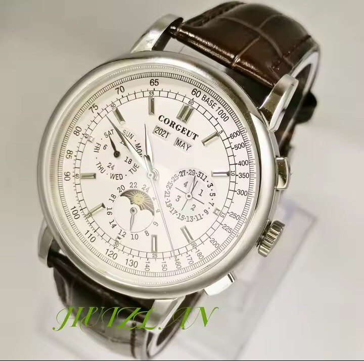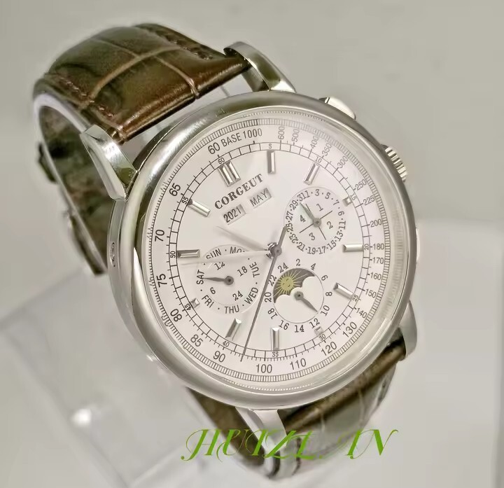 【新品未使用】自動巻き 腕時計 年日付インジケーター太陽と月 レザーベルトビジネスウォッチ防水☆☆☆