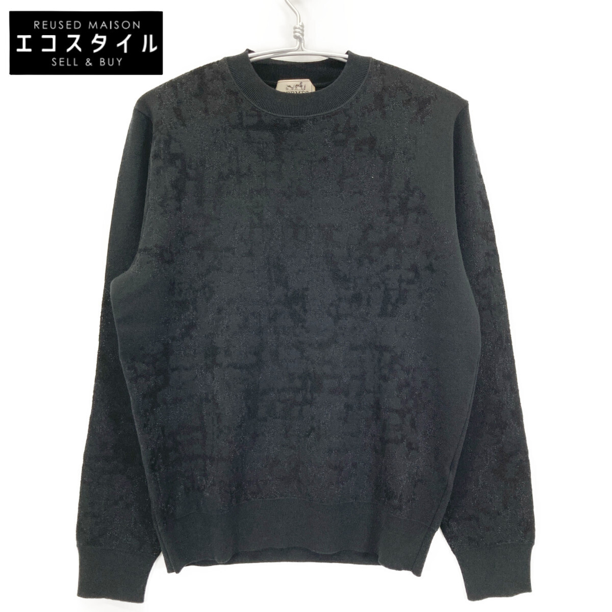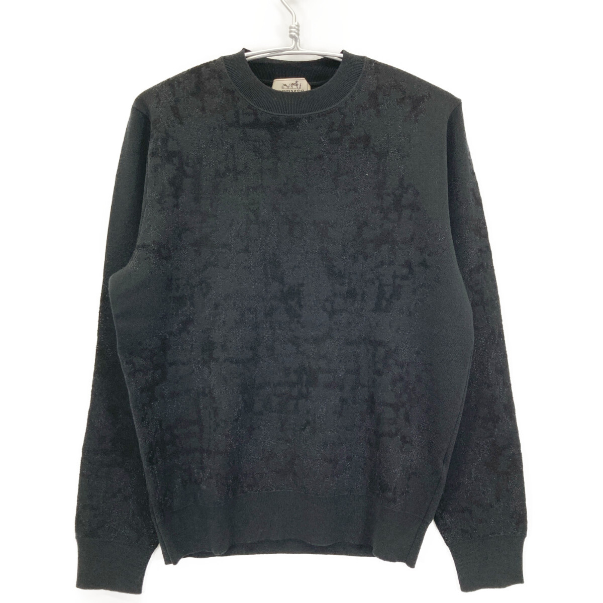 HERMES エルメス ブラック ウール クルーネック ニット ブラック S トップス ウール メンズ 中古