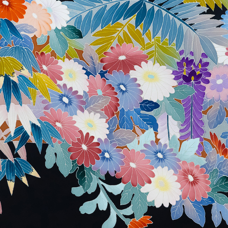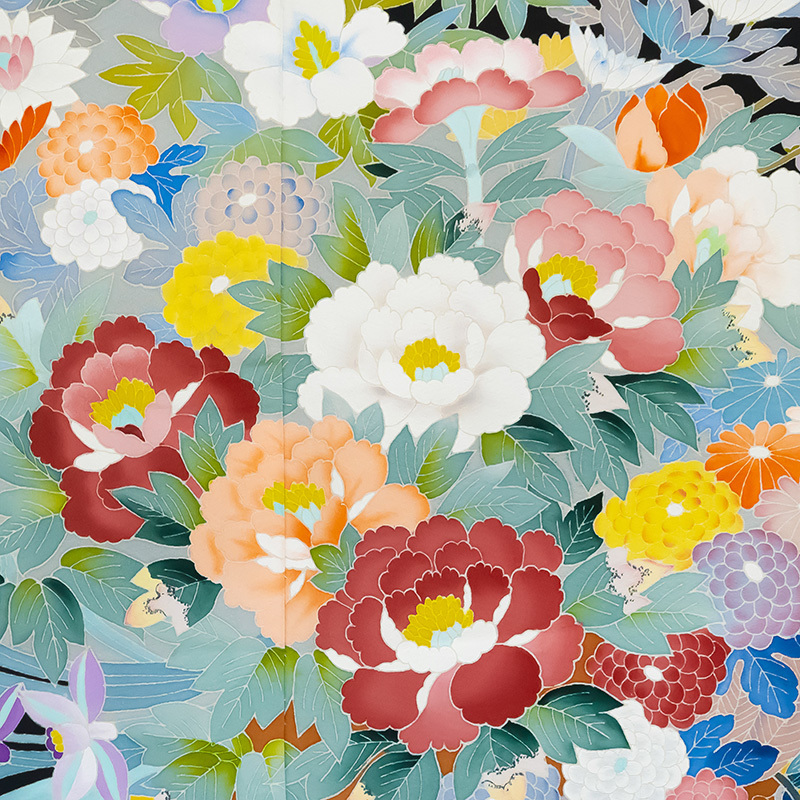 | ※記念感謝祭【仕立無料】本加賀友禅手描美術技術者釜谷一二先生作☆多色染大花車四季花祝文黒留袖 |