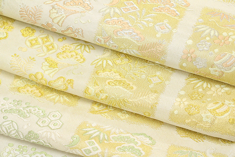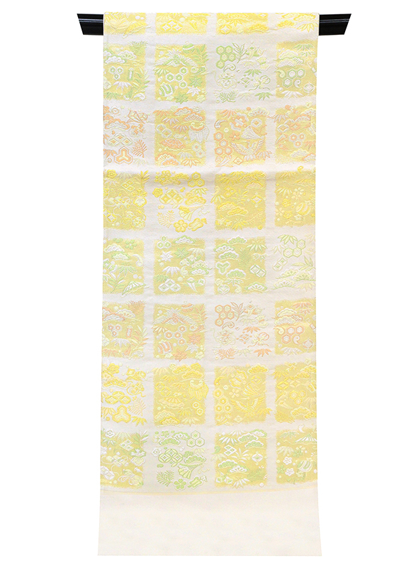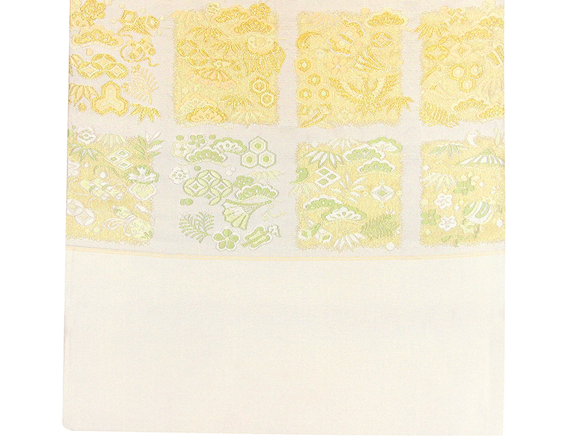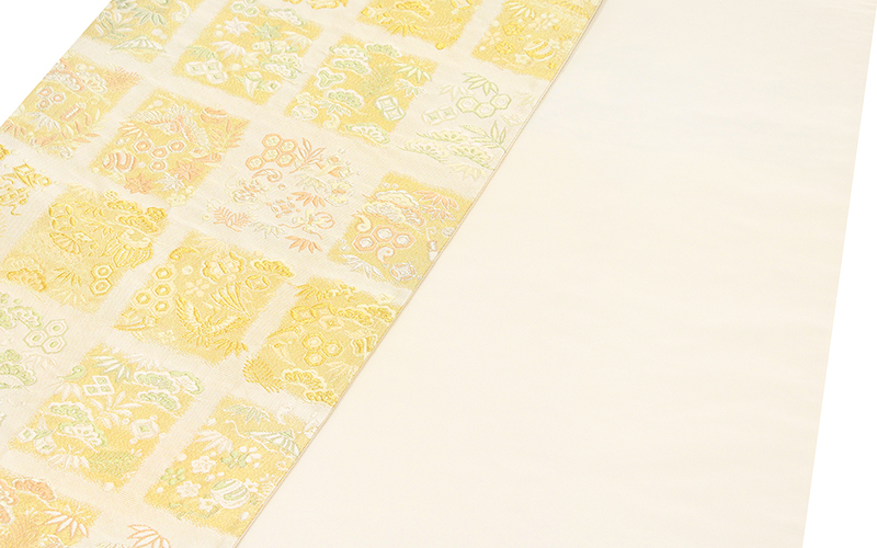 | ★品質・詳細 | ○地色 【こちらの地色は白ベージュ地系です。】 ○絹織物 ○新品・未仕立の礼装用袋帯です。 ○西陣老舗田中織物謹製 【証紙番号 326】 ○長さ 約4.40m ○参考上代 198,000円 |