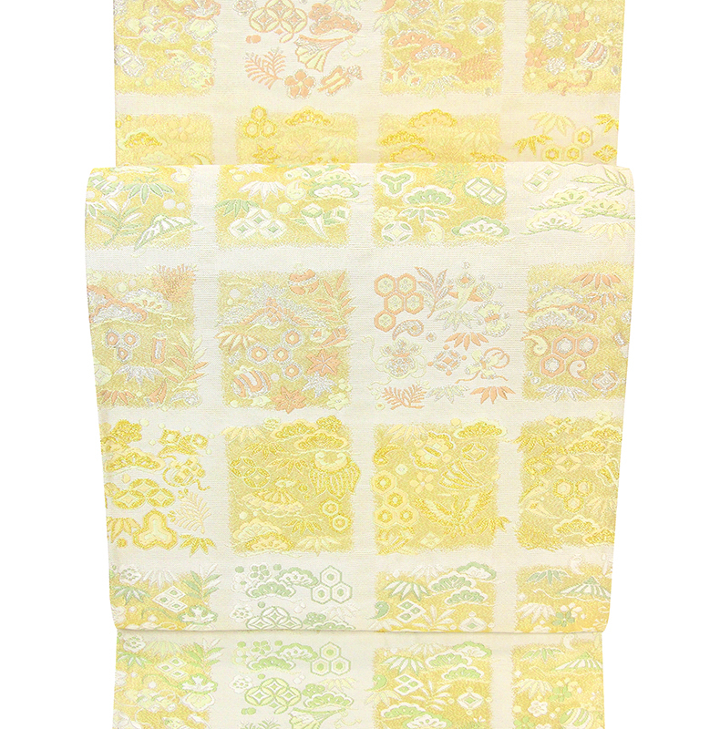| ※記念感謝祭【仕立無料】西陣工芸唐織刺繍錦織正倉院宝尽し華文袋帯☆老舗田中織物☆格調市松仕様 |