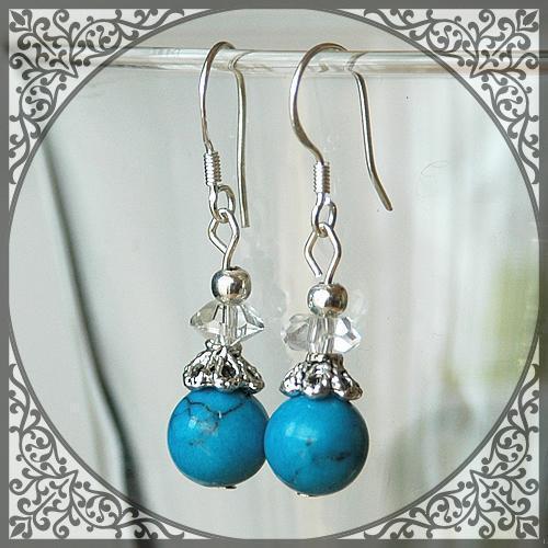 天然石の8mm玉を使った可愛いプチピアス。 メタルパーツとカット水晶でお洒落して♪ | |
