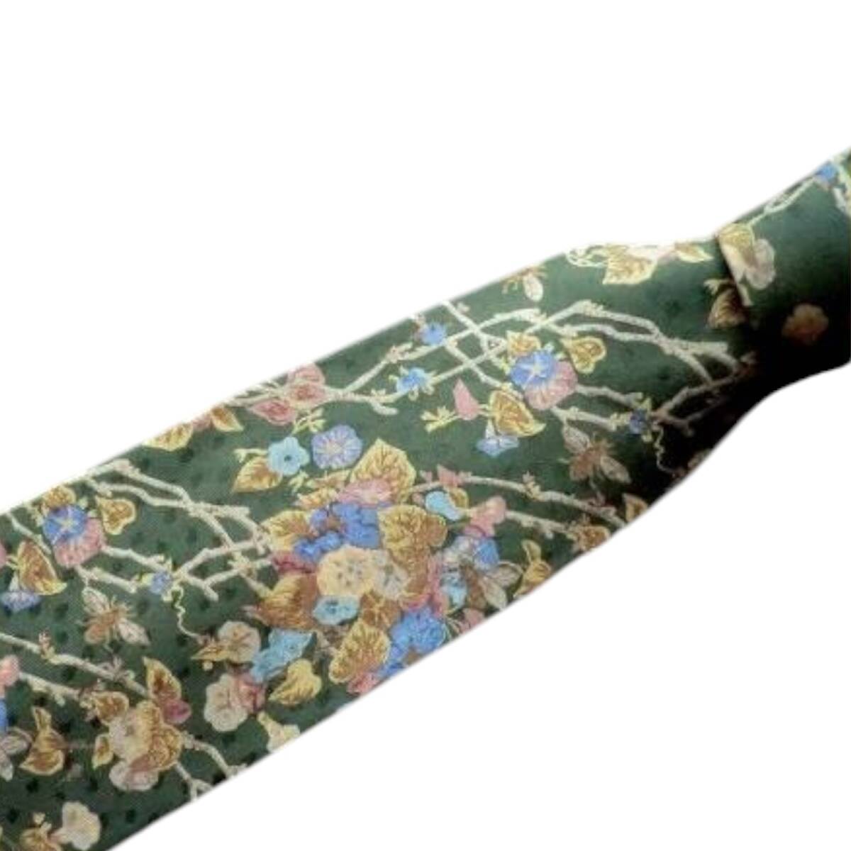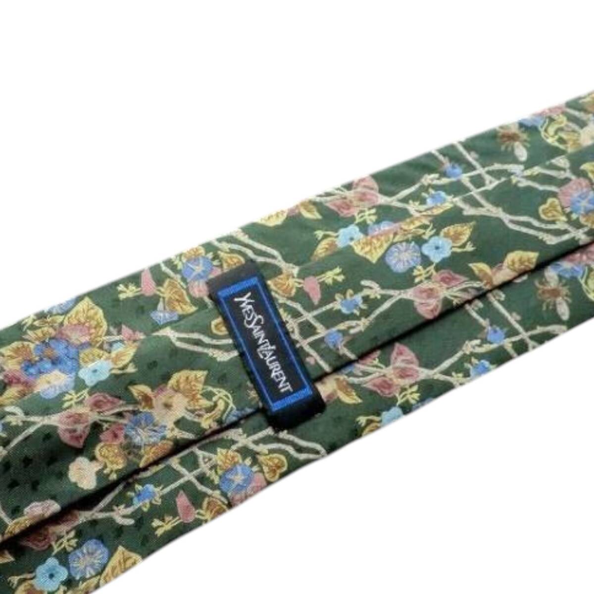 $ 新品 $ 試着程度 ● ブランドネクタイ ● Yves Saint Laurent | イヴサンローラン ◆ ボタニカル 総柄 ◆ 深緑 グリーン◆ 絹◆ 日本製