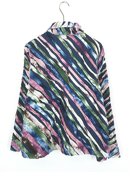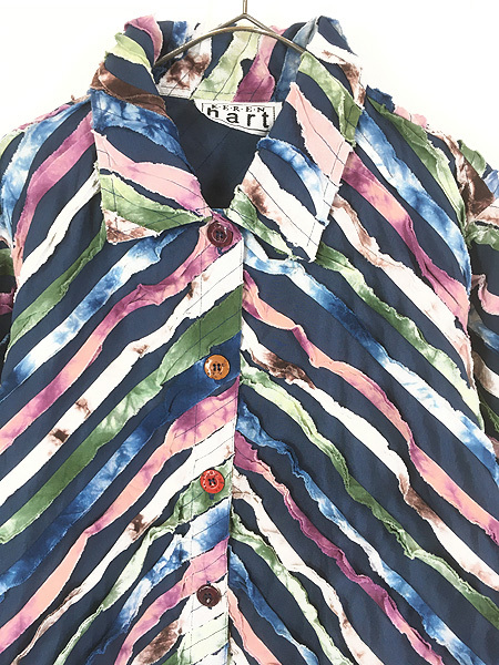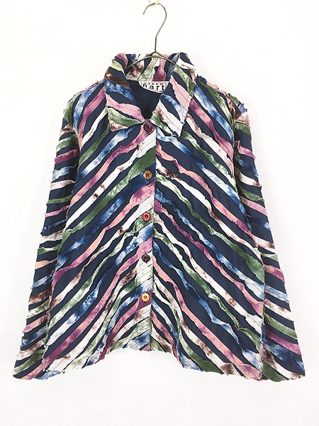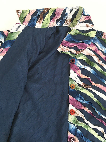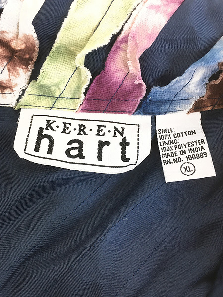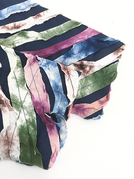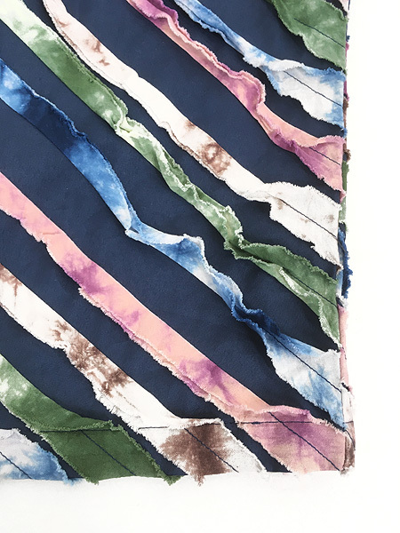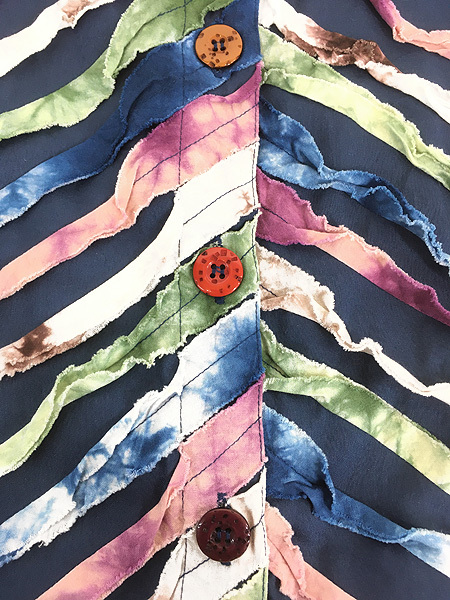 タイダイ染めの裂き布が施された個性的なデザインです。
