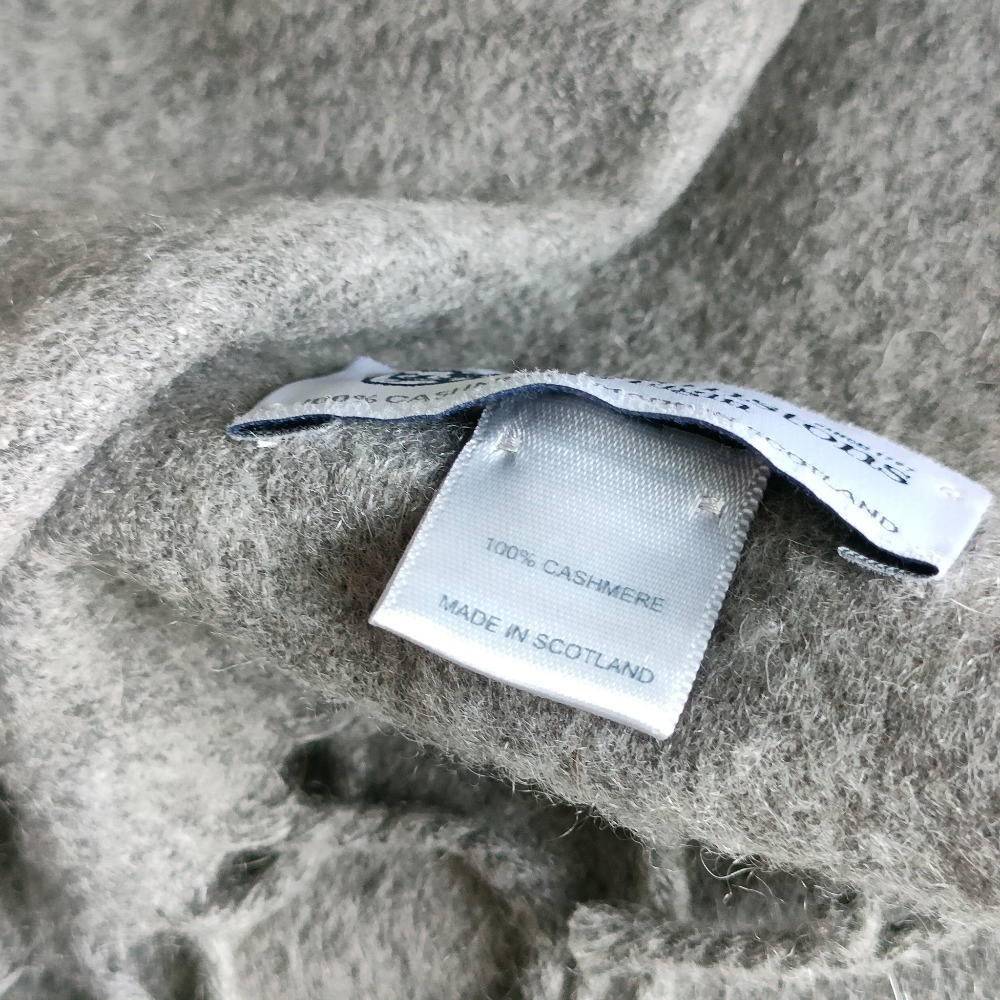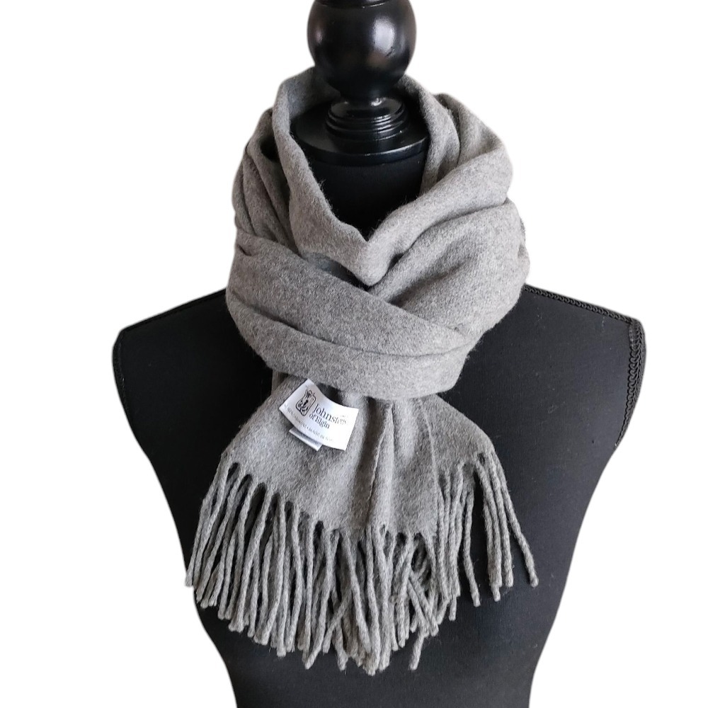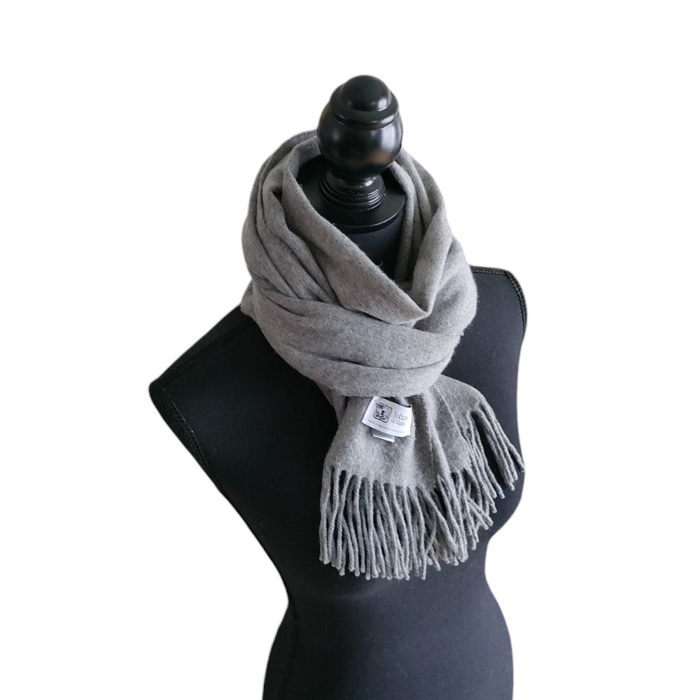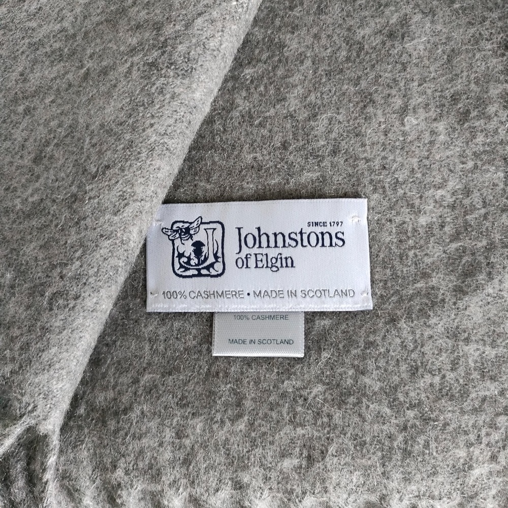 新品同様 Johnstons of Elgin ジョンストンズオブエルガン カシミヤ100% フリンジ ロングマフラー グレー