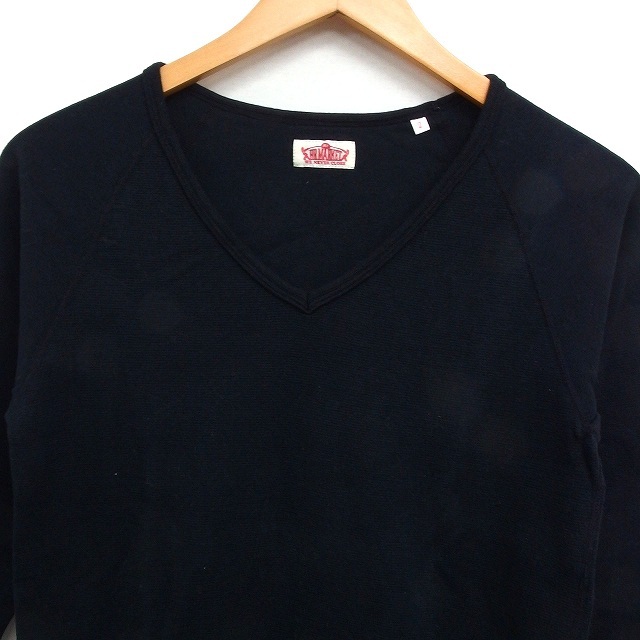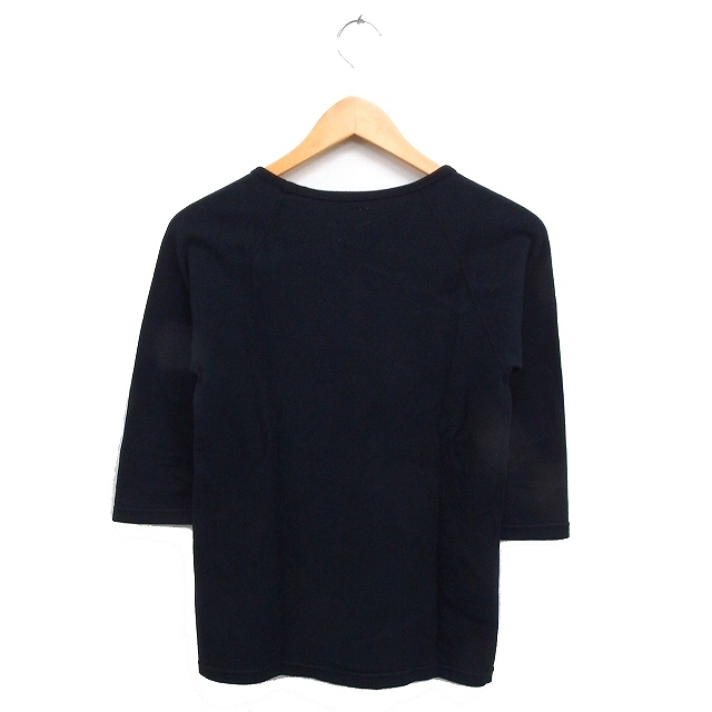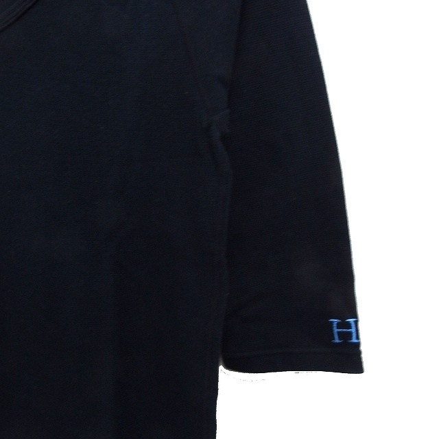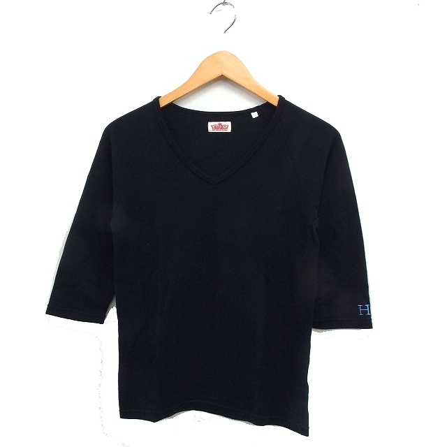 ハリウッドランチマーケット HOLLYWOOD RANCH MARKET Vネック Tシャツ 7分袖 ロゴマーク刺繍 コットン 綿 2 ブラック 黒 /FT45 レディース