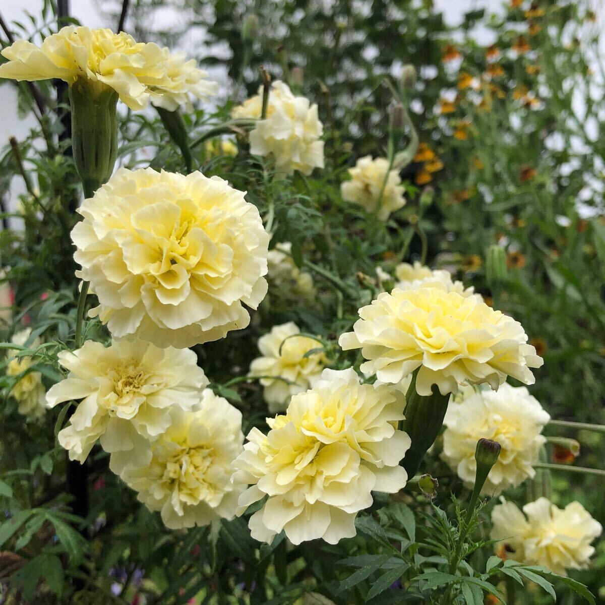 クリーム色のような柔らかな白い花色が優しい印象的のマリーゴールドです。