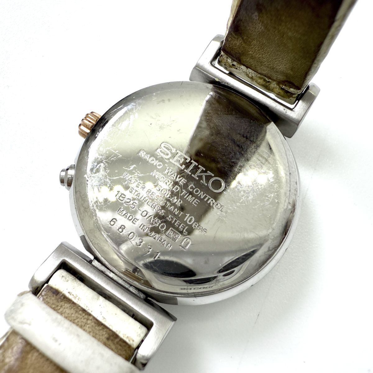 SEIKO セイコー EXCELINE エクセリーヌ 1B25-0AS0 680331 SS 革 電波ソーラー シェル文字盤 レディース腕時計
