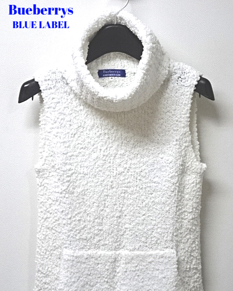 M【Burberrys BLUE LABEL FBF26-581 WHITE バーバリー ブルーレーベル ニット BURBERRY BLUE LABEL タートルノースリーブナイロンニット 】