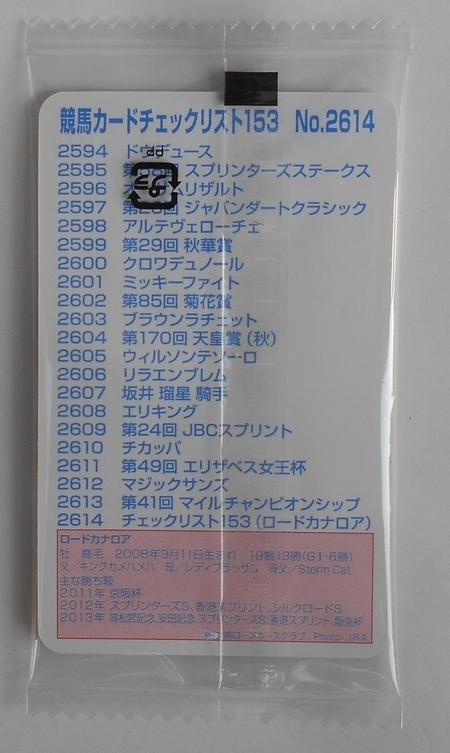 ◎まねき馬カード No.2614 チェックリスト153/ロードカナロア(未開封)