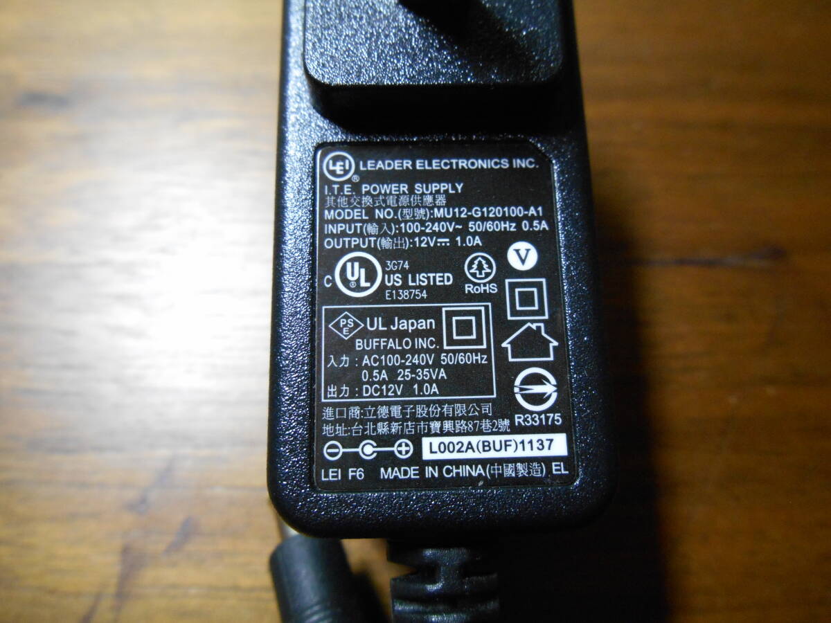 BUFFALO ACアダプター MU12-G120100-A1 12V/1.0A 無線LANルーター用 中古