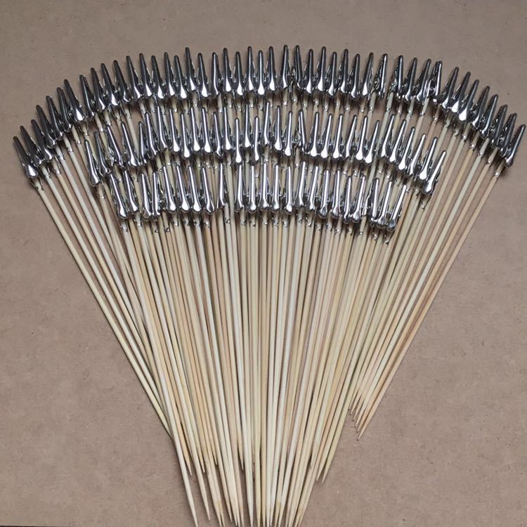 クリップを竹串に一本ずつ手作業で巻いておりますので多少の個体差はございます。