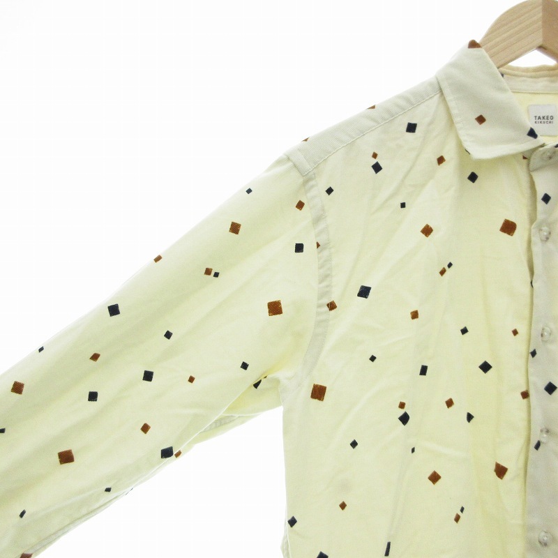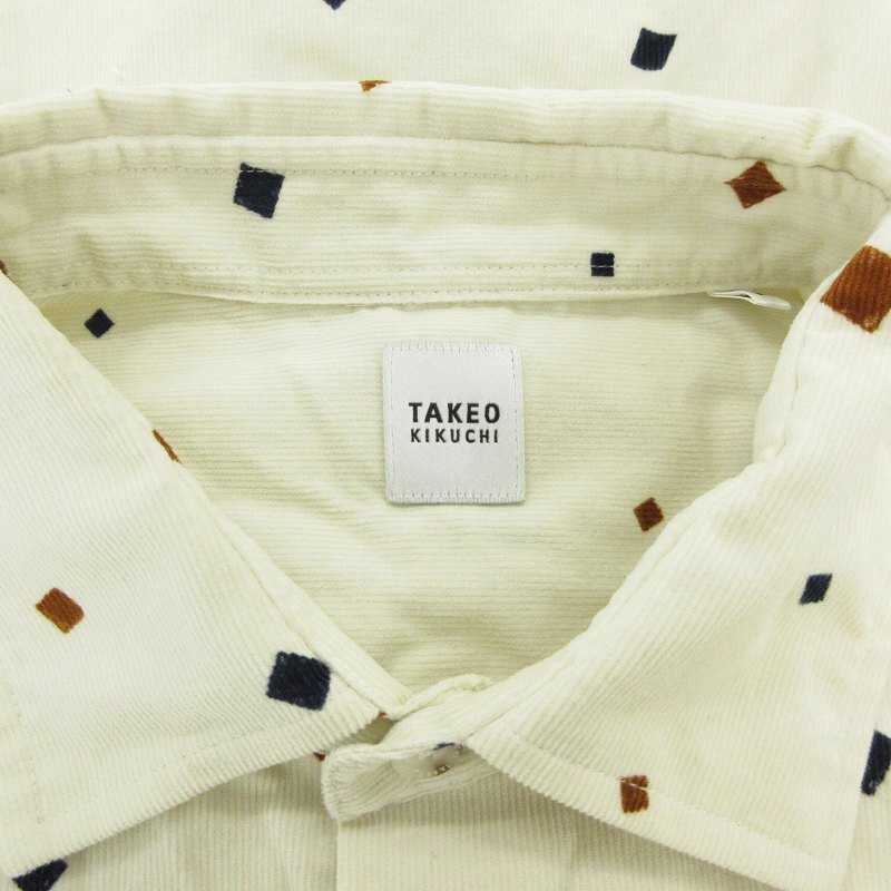 タケオキクチ TAKEO KIKUCHI 美品 カジュアルシャツ コーデュロイ 総柄 長袖 白 ホワイト アイボリー /AE メンズ