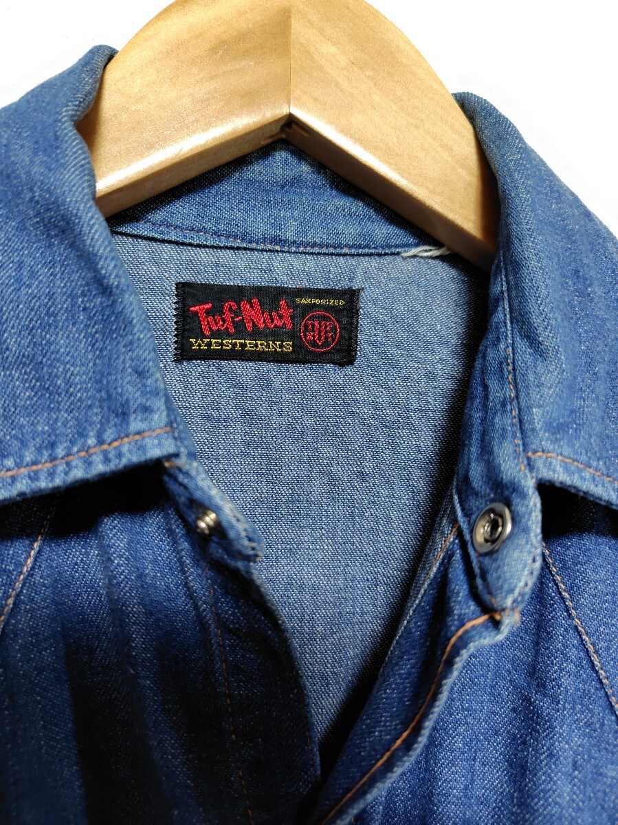 希少なオールスナップボタン、衿芯無し、ダイアゴナルポケットのタフナット50'sデニムシャツ。
