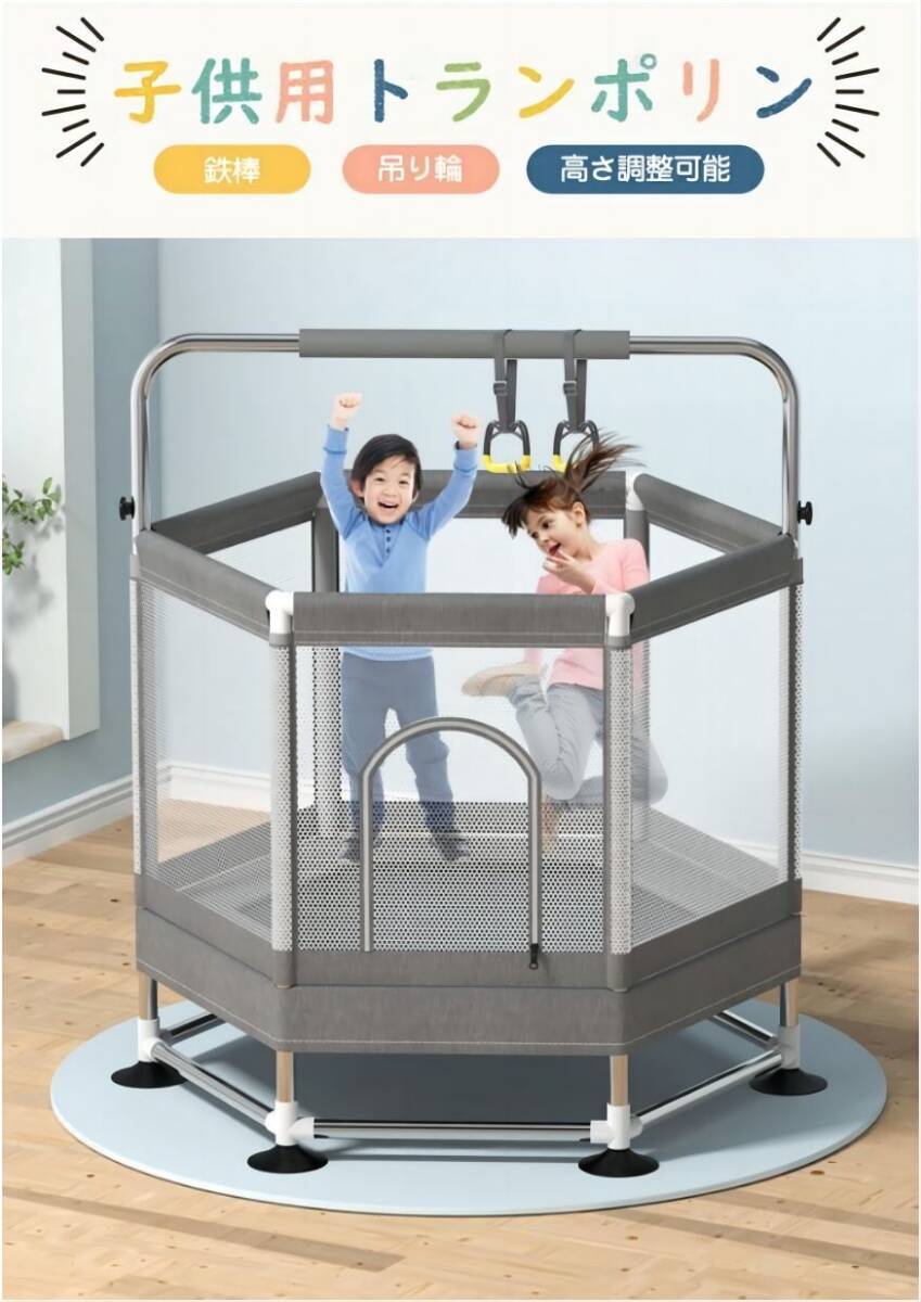 トランポリン 子供用 安全ネット付き 鉄棒 吊り輪付き 安全カバー セーフティネット付き スプリング式 大型 家庭用