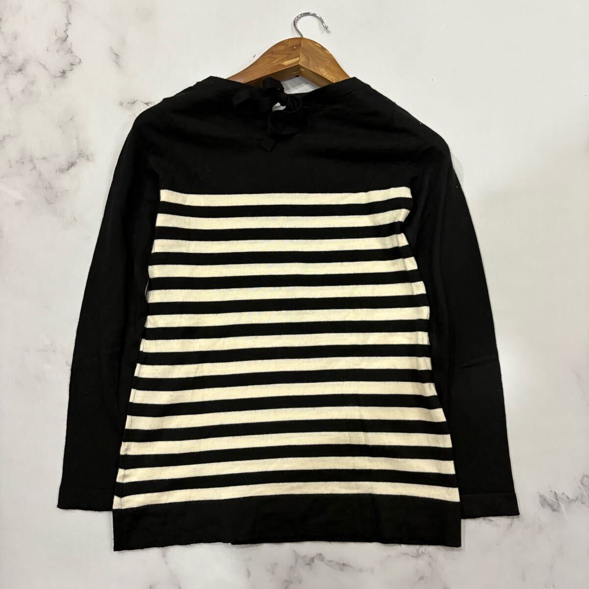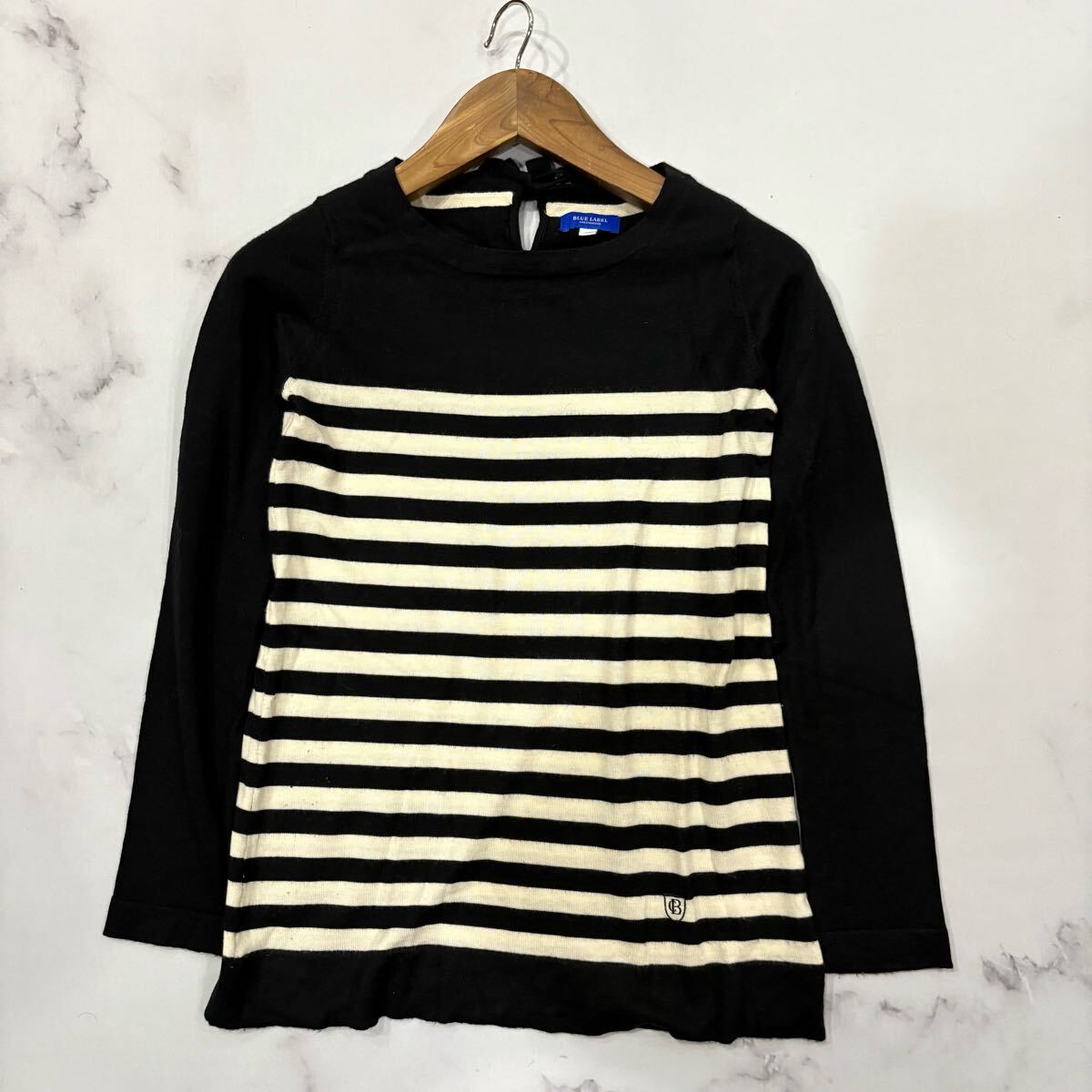JJ ■ 洗練されたデザイン '国内正規品' BLUE LABEL CRESTBRIDGE ブルーレーベル クレストブリッジ 長袖 WOOL ボーダー ニット ブラウス 38