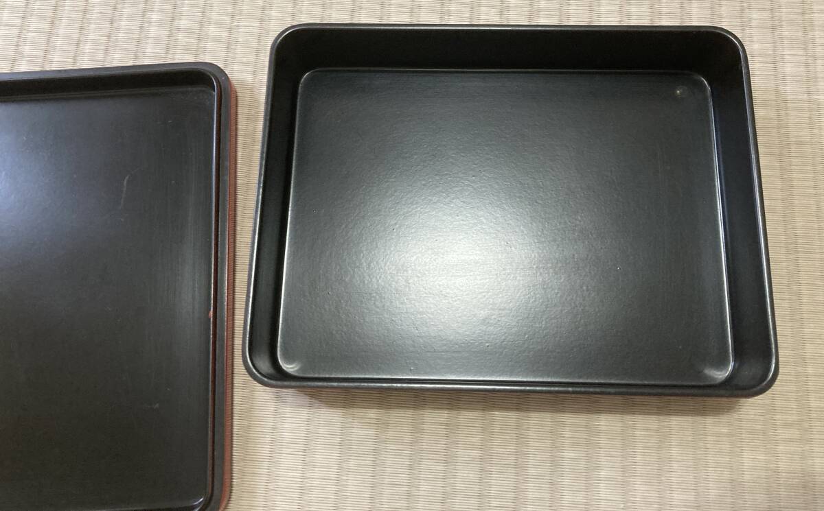 大きさはおおよそで、お盆の内側で横19cm、縦14cm、高さ3cmです。