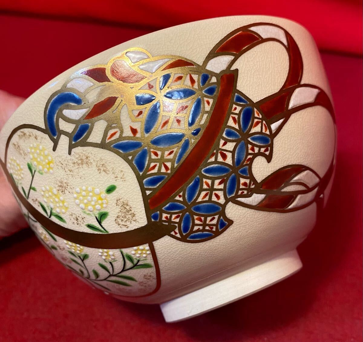 京焼『陶彩』の作品で、色絵鏡裏文のお茶碗です。