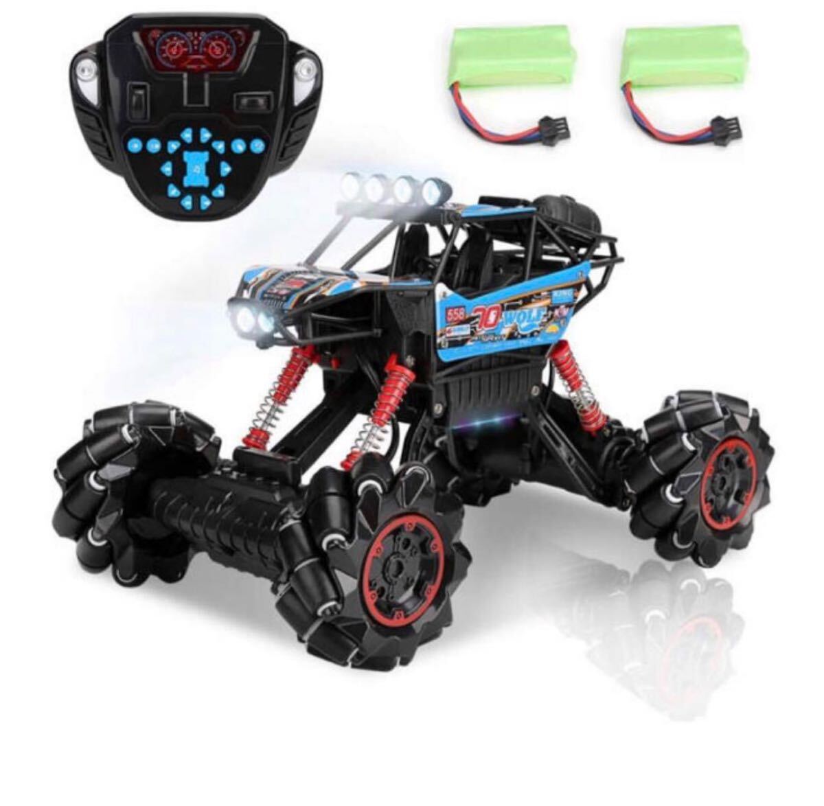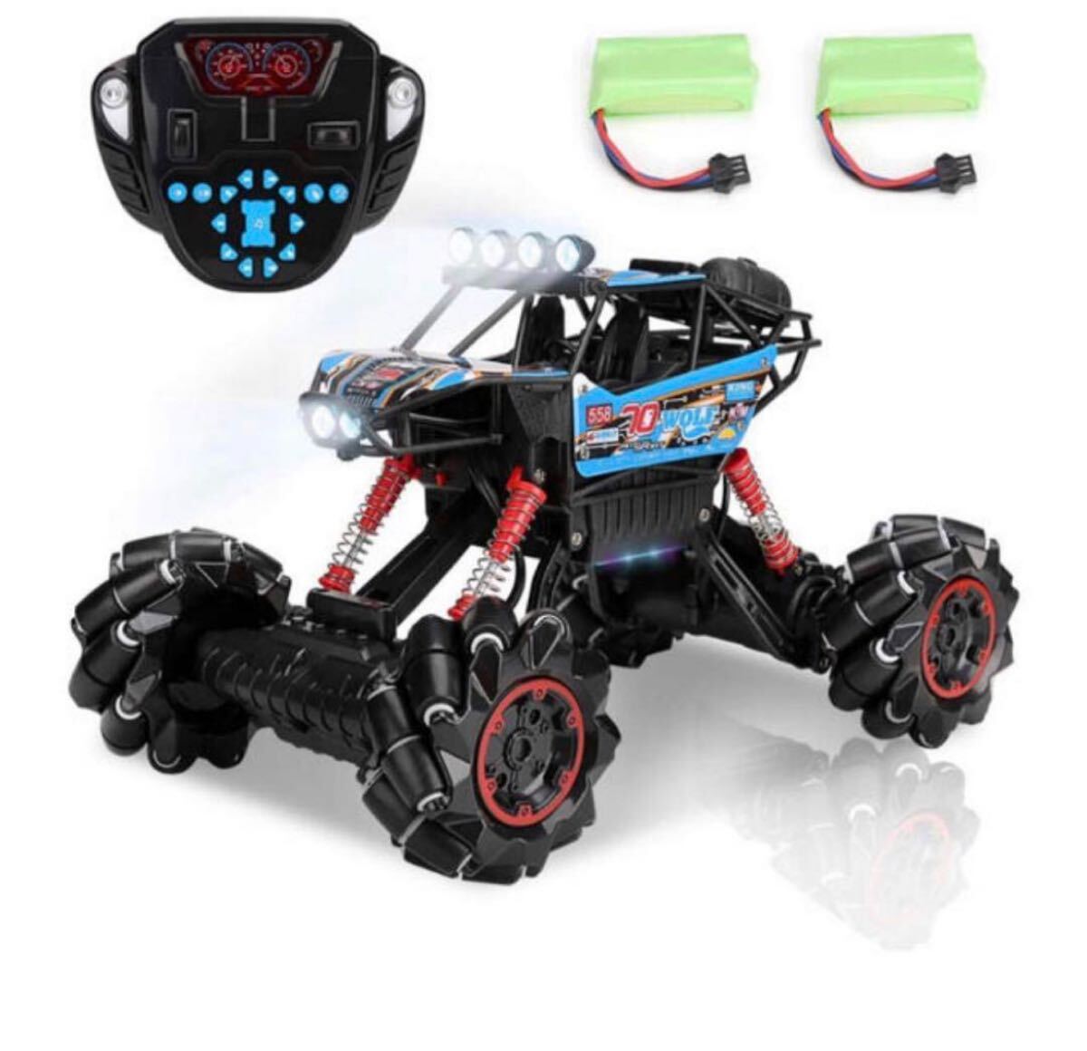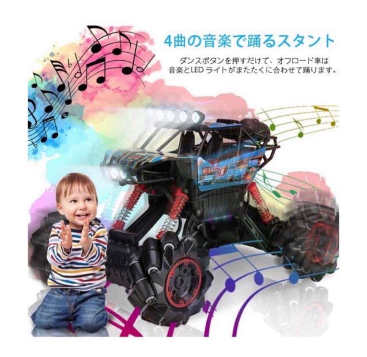 【2.4GHz無線・7つの主要機能】:2.4GHzの無線制御技術を採用し、強力な抗干渉機能を確保します。複数台が同時に走行は可能、互いに影響しません。他人と一緒に同地同時に運動競技可能です。4WD搭載の4つの強力なモータにより、短時間で最大速度15KM / H(9.3MPH)に達することができて、遠隔操作距離は最大80mです。前進/後退、左折/右折、全方位ドリフト、360度回転、音楽ダンス、明るいLEDライト、プログラミングデモンストレーションの様々な機能搭載します。