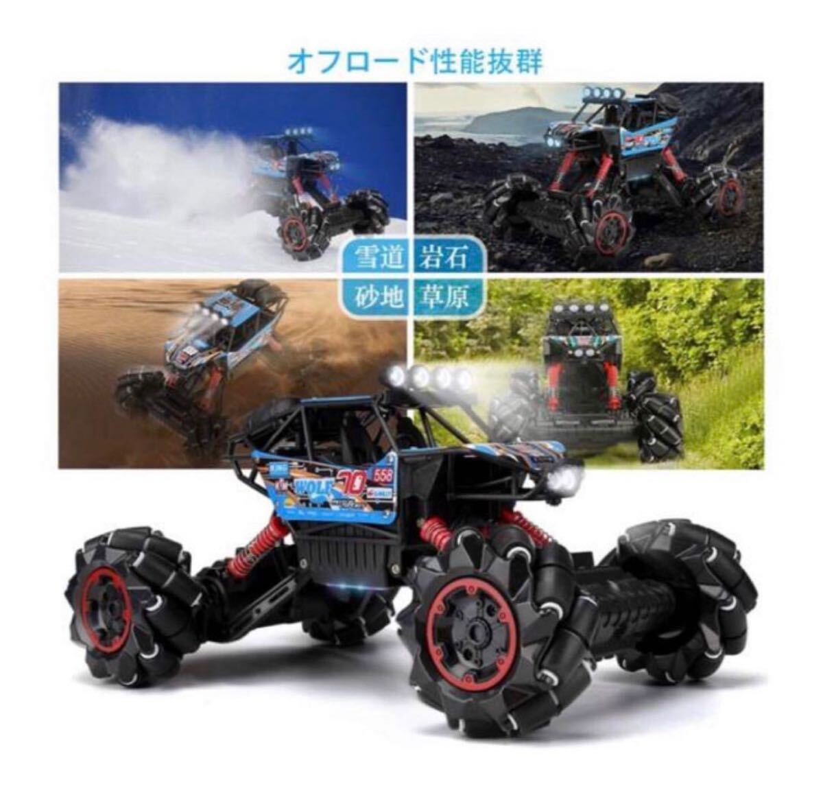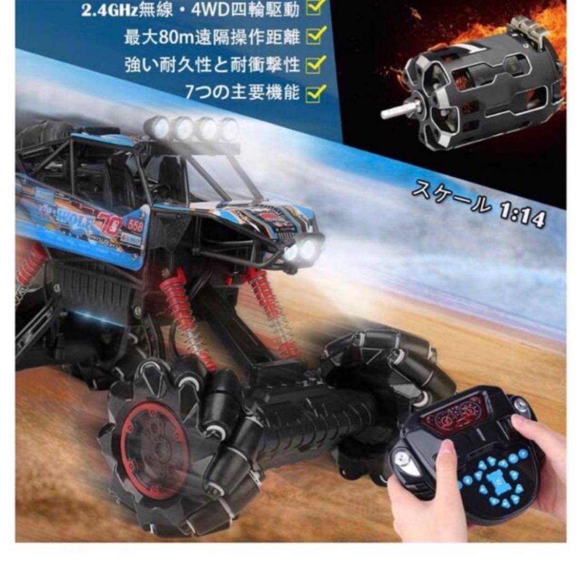 【オフロード性能抜群・全方位ドリフト】:1/14大きなサイズによりリアルで印象的です。このラジコンカーは四輪駆動を採用しており、あらゆる地形でも容易に安定した強力な動力トルクを提供することができます。体の向きを変更しないで全方位移動対応します。車の先端/尾部が左右、45度で左右の前方、45度で左右の後方と左右向きであらゆる方向にドリフトできます。