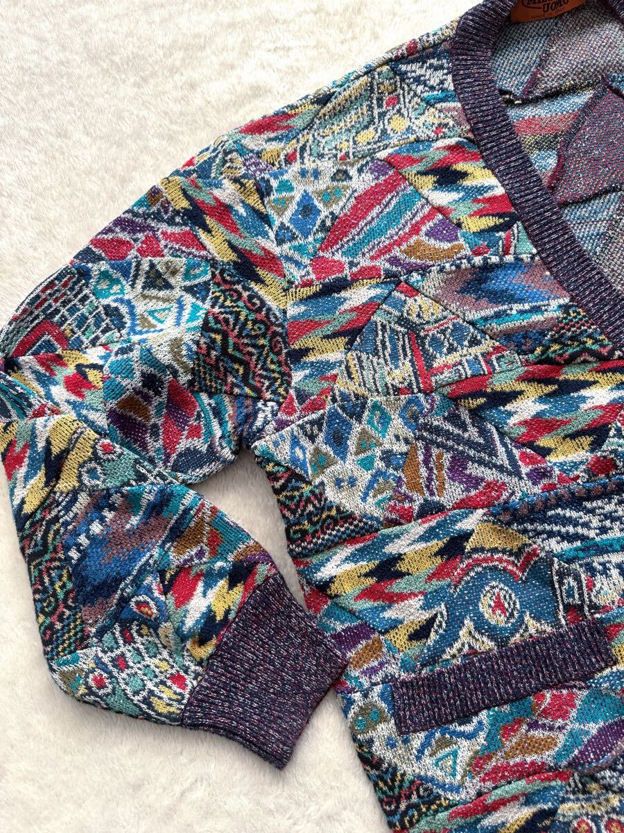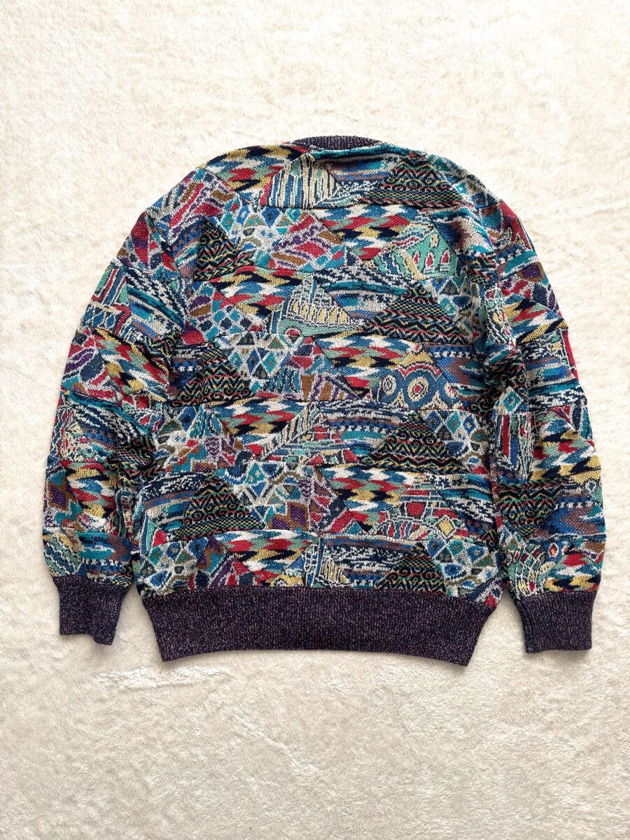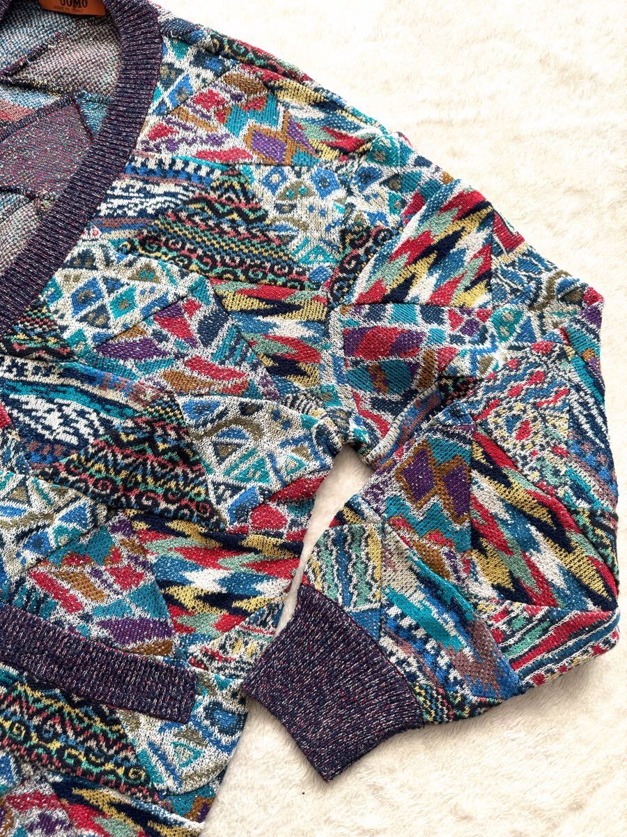 春秋 MISSONI UOMO size50 イタリア製パッチワークニットカーディガン クレイジーパターン リネン コットン ウール メンズ ミッソーニ