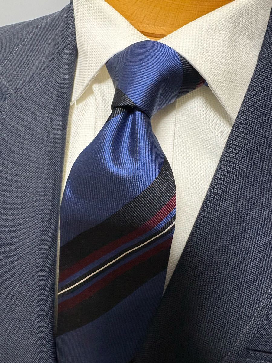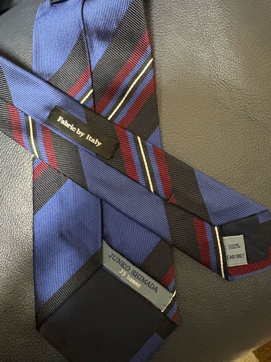 【美品】JUNKO SHIMADAストライプネクタイ 日本製高級シルク 大剣約8cm ブルー基調 2504