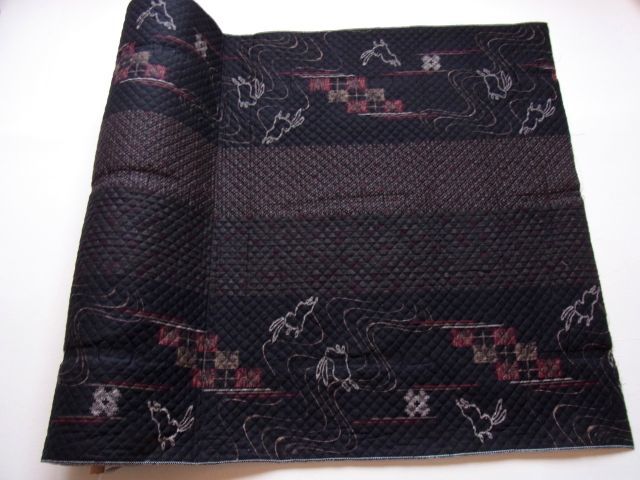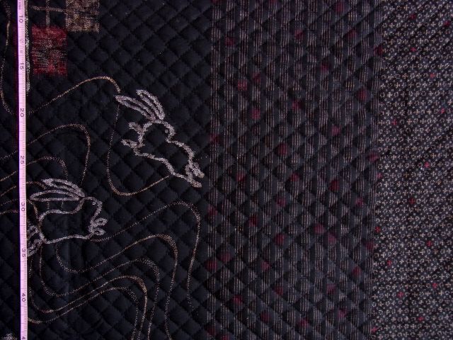 和柄キルティング【波兎・ボーダー(黒)】 [NE1436-A]