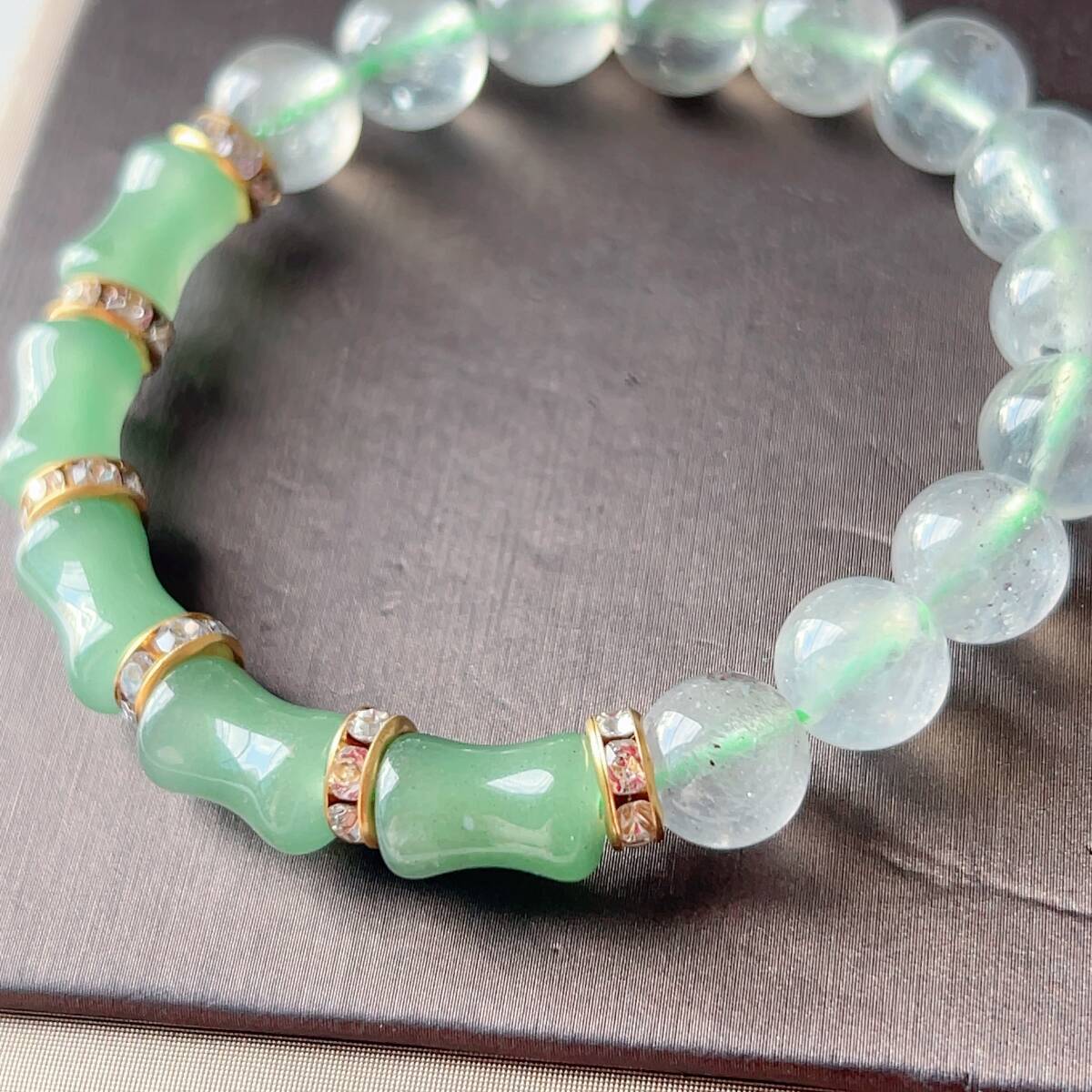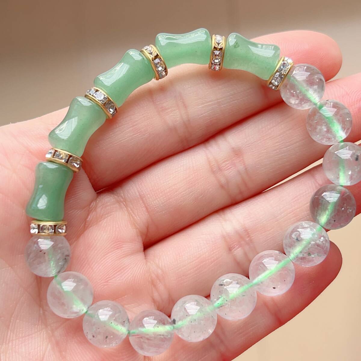 ◇水晶+東陵玉◇ヒスイ◇ブレスレット◇天然石◇パワーストーン◇巾着袋付き◇プレゼントにも 030B4143