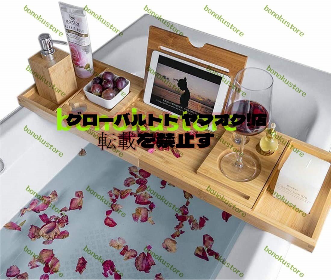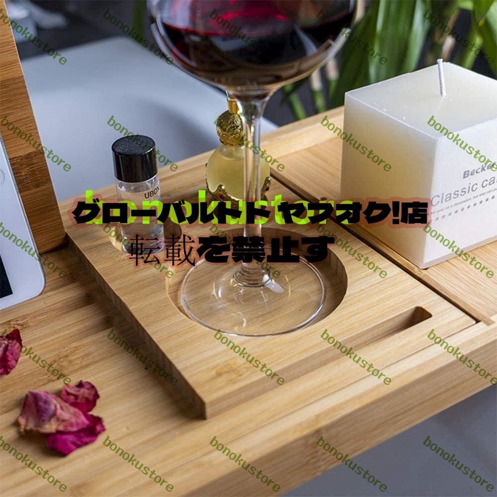 バスボードキャディシェルフ 竹製 バスタブ上トレイ ラック バスタブ収納 携帯電話用木製バステーブル 本棚とワイングラスホルダー付きバススタンドアタッチメント ホームホテル用