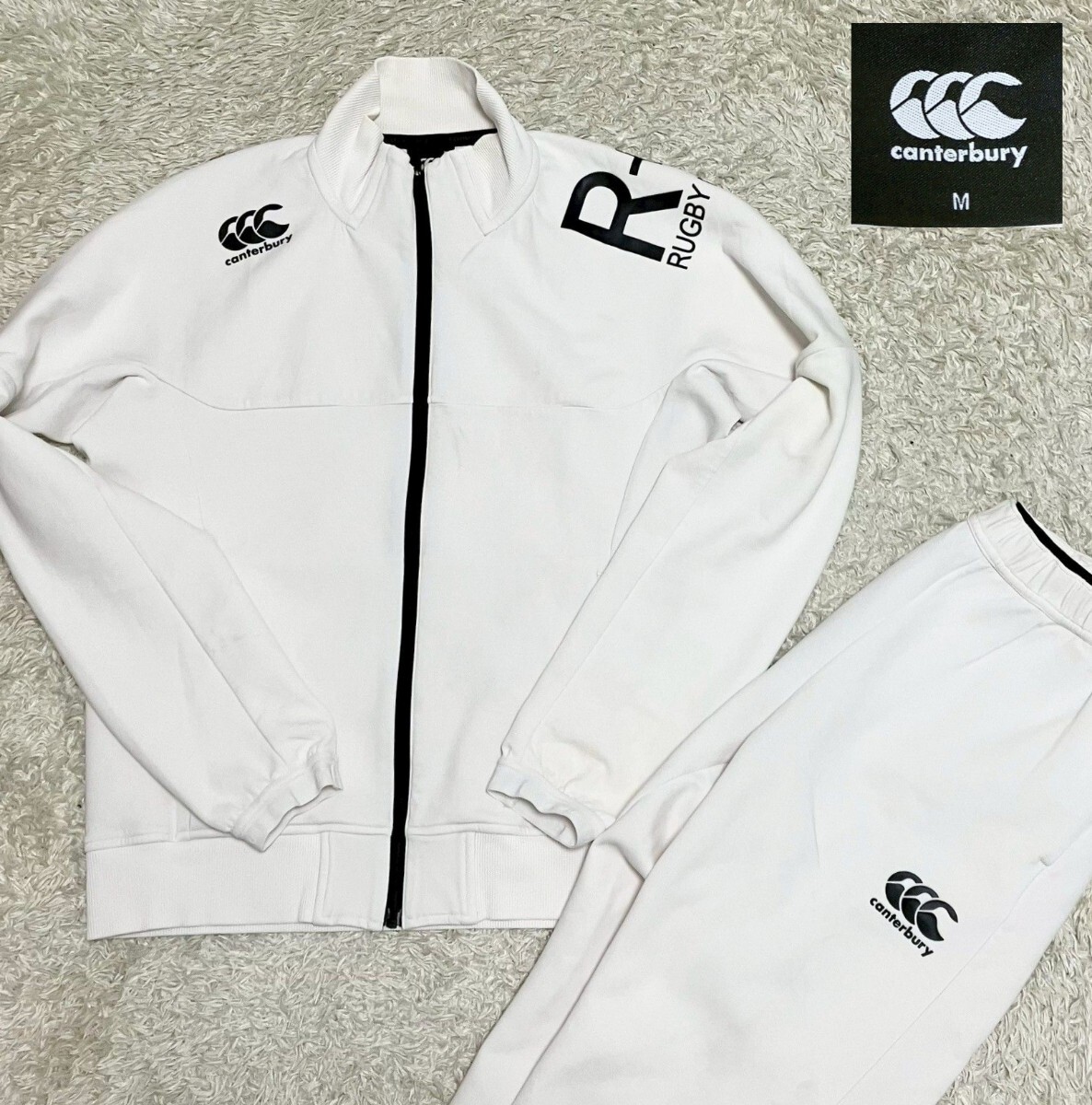 【使用感強▲】上M下Lサイズ Canterbury テックスウェットセットアップ/白◆上下セット☆カンタベリー (3)