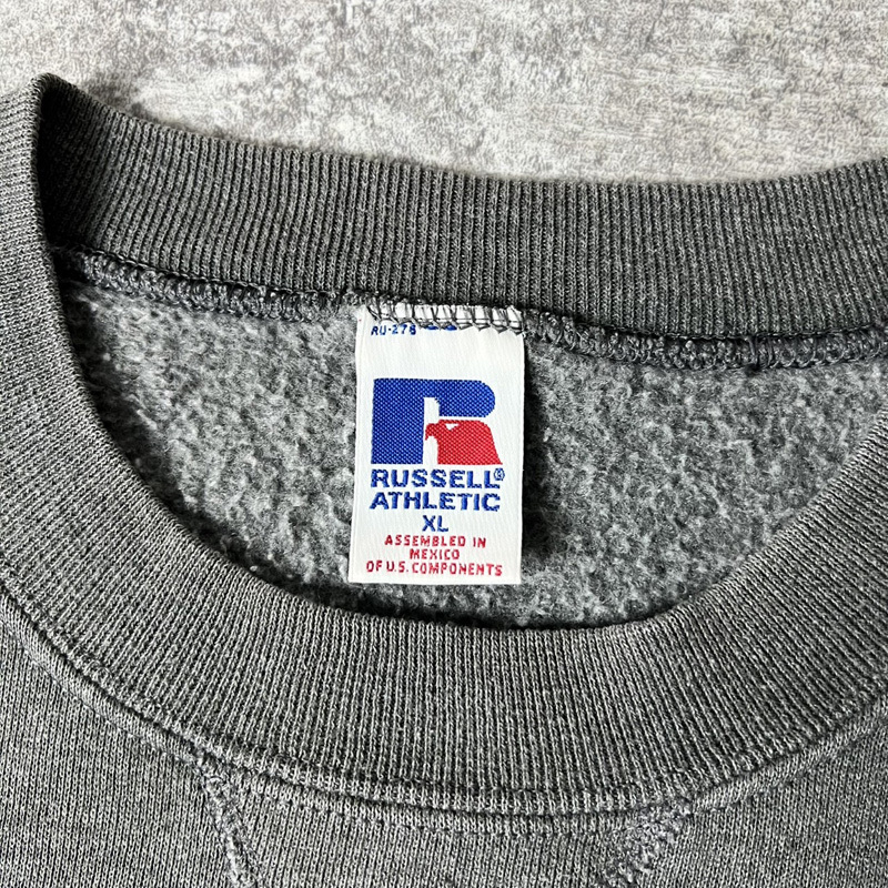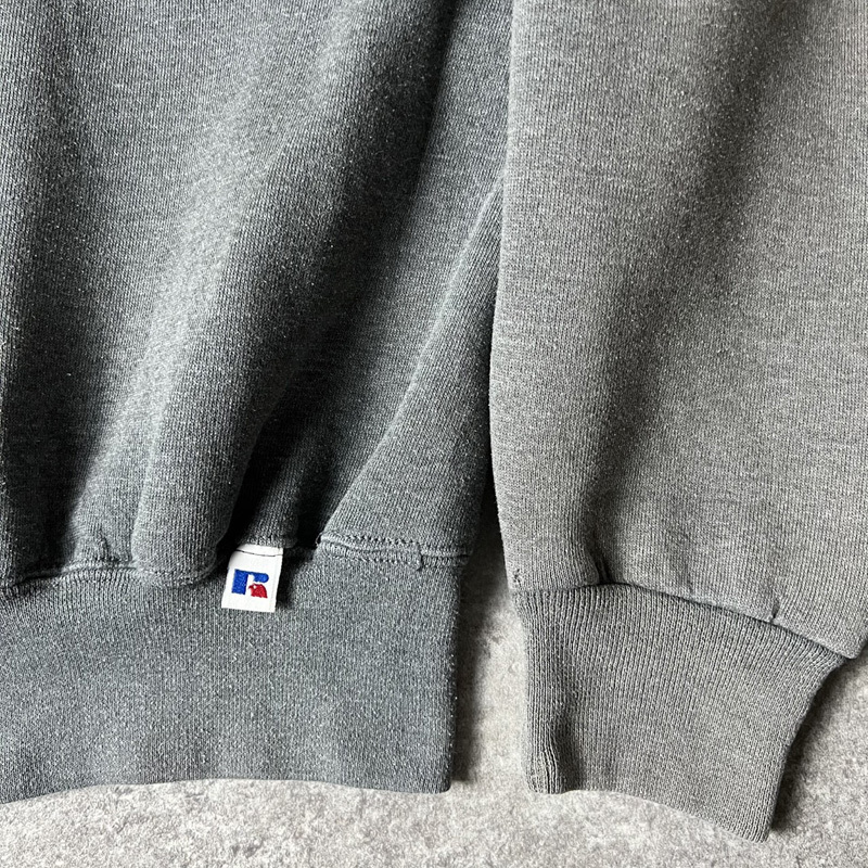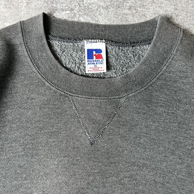 雰囲気系 90s RUSSELL 無地 前V スウェット トレーナー XL / 90年代 オールド ラッセル 裏起毛 グレー フェード スエット