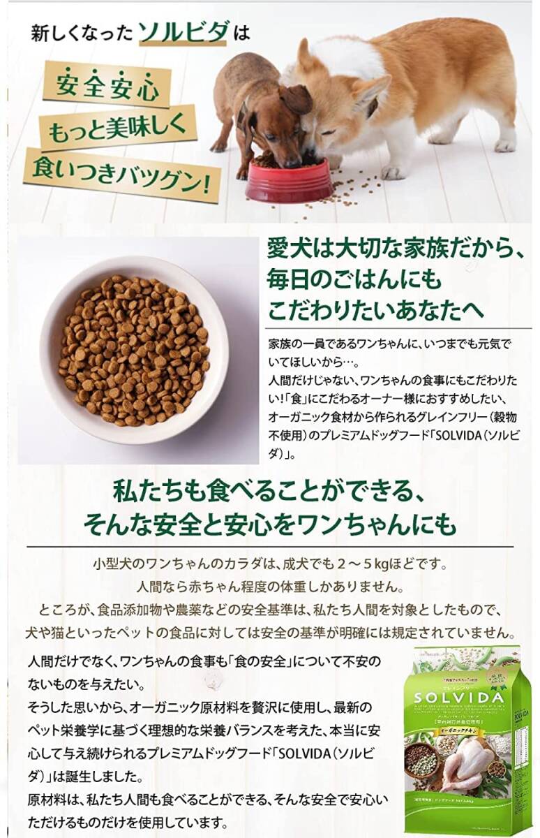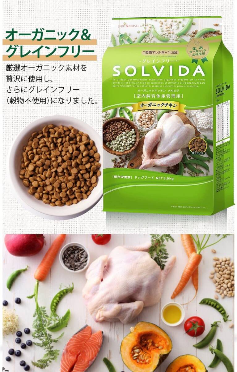 | 商品名 | ソルビダ 体重管理用 3.6kg グレインフリー ドッグフード オーガニックチキン 正規品 全犬種 対応 |