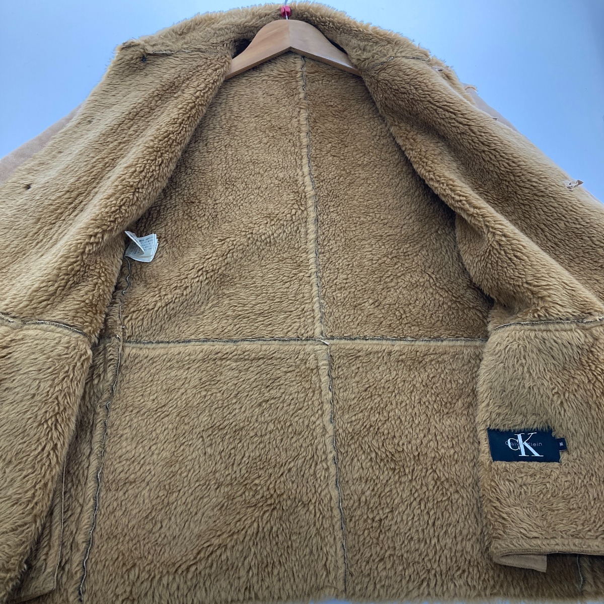 □□ Calvin Klein カルバンクライン ロングフェイクムートンコート Mサイズ 373-5 キャメル 傷や汚れあり