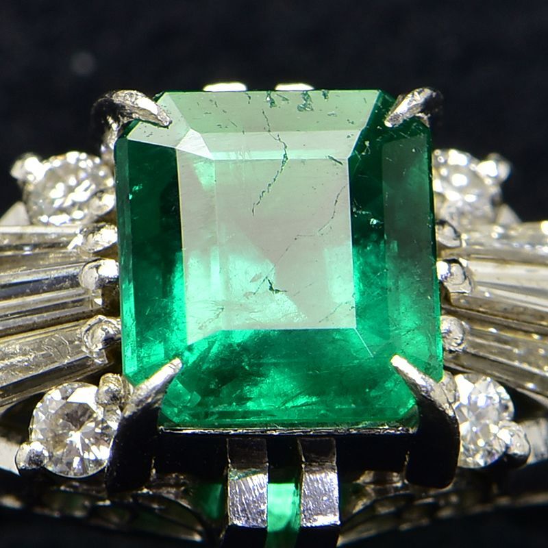 状態 | ランクA- エメラルドに所々10倍ルーペで確認できる極微細なスレとカケ、プラチナ全体に微細なスレキズがございます。 |