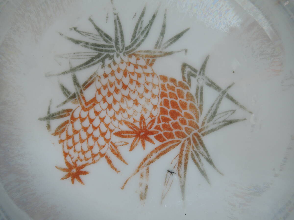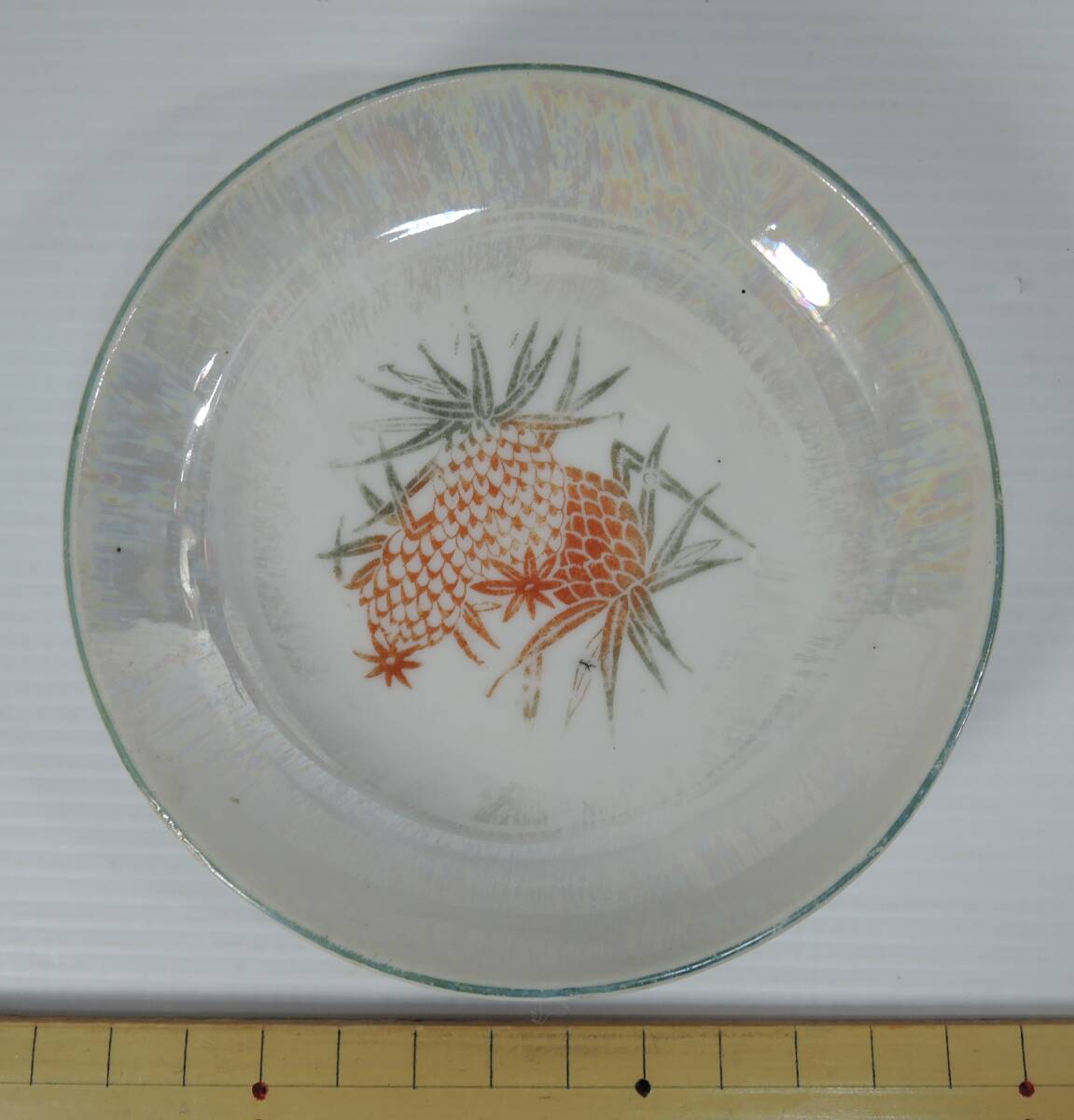 ☆12K 昭和レトロ■パイナップル絵 小皿 ラスター加工■