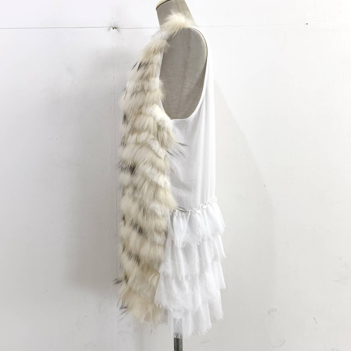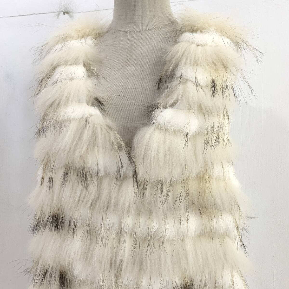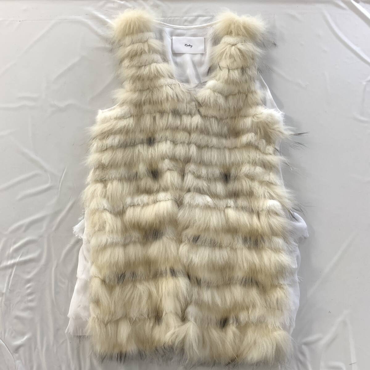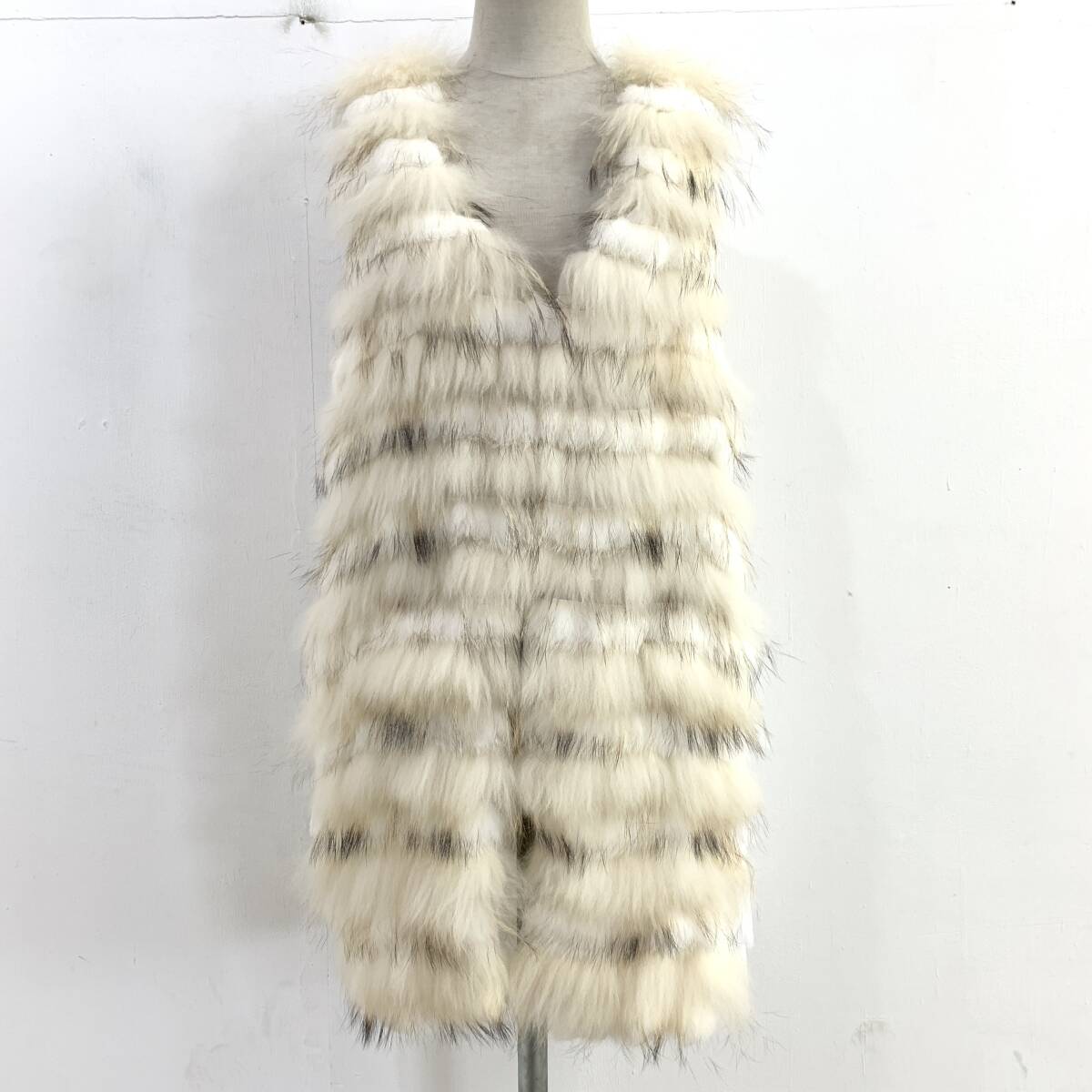 ☆RISLEY リズレー タヌキ ラビットファー付き ロング丈 ノースリーブ ベスト ジレ トップス チュニック F【レターパックプラス郵送可】Bの出品です。
